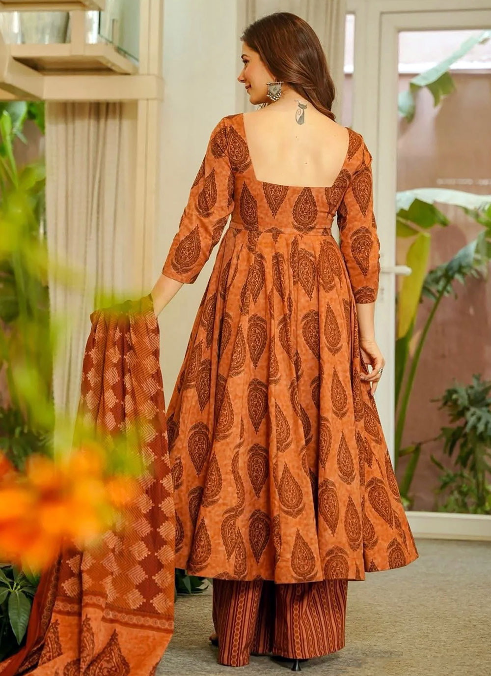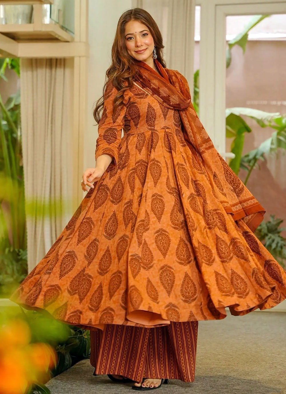 The Orange Digital Printed Muslin Trendy Salwar Suit for Ceremonial is a vibrant blend of comfort and festive elegance. Crafted from soft muslin fabric, it offers a lightweight and breathable feel ideal for long ceremonial events. Comes with matching bottom and dupatta.