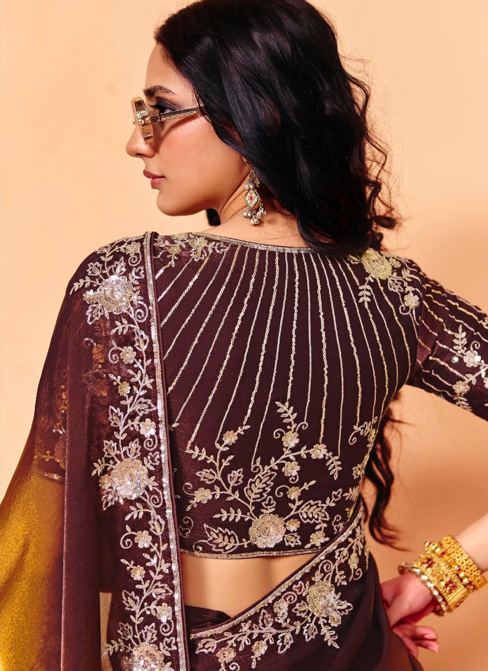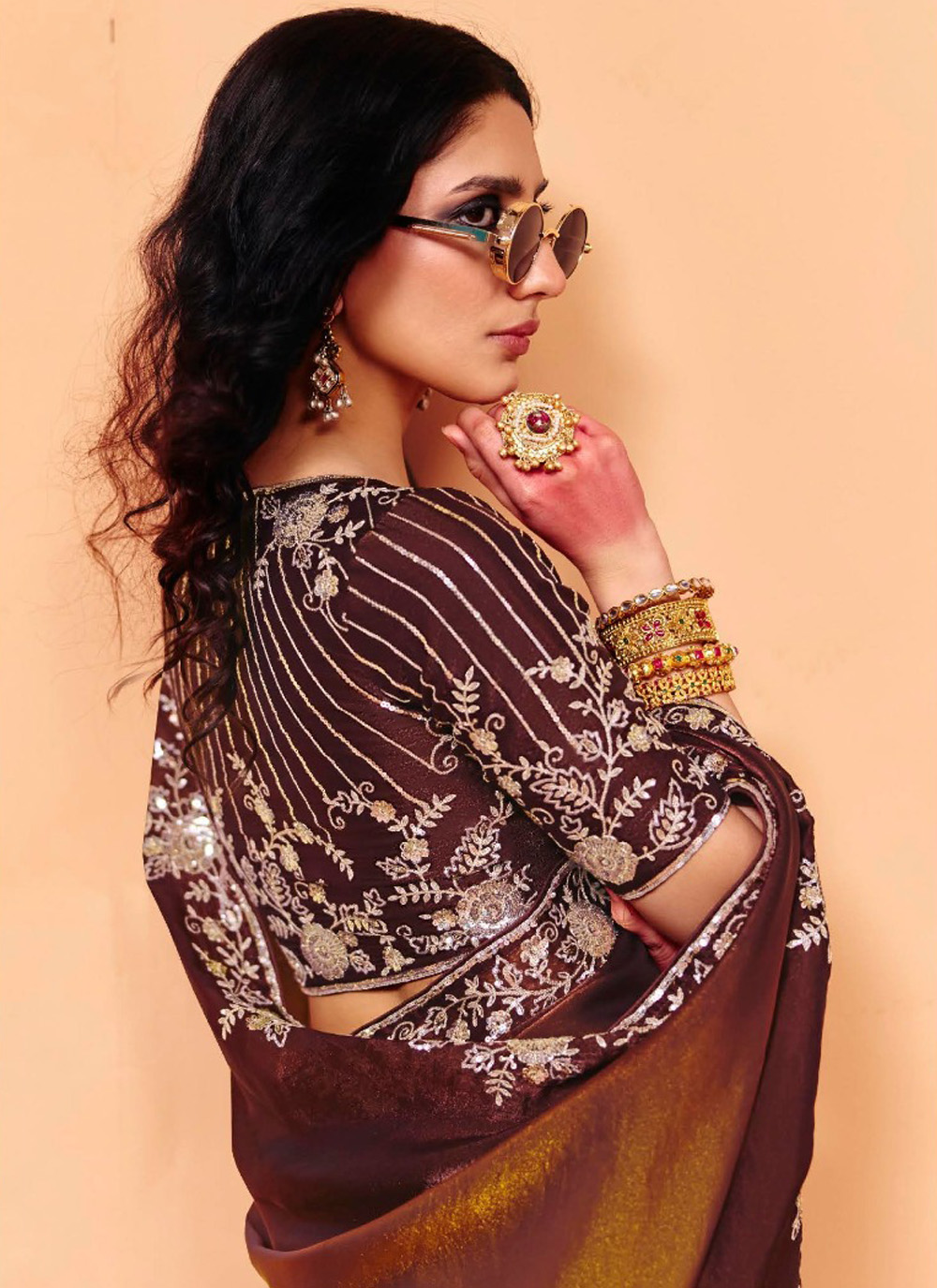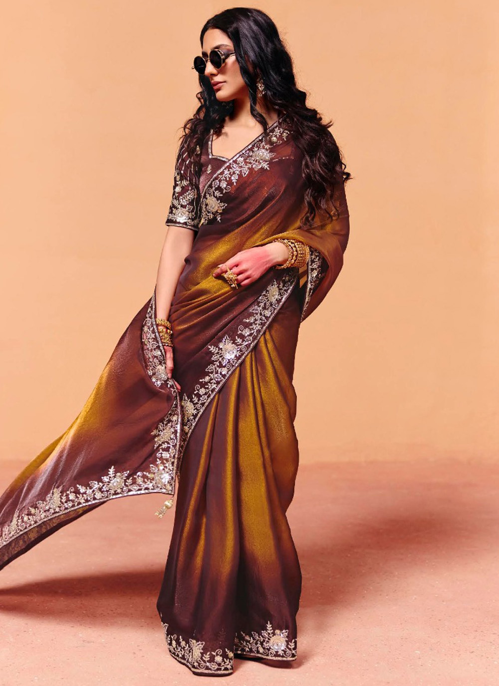 The Organza Multi Colour Embroidered Sequins Work Classic Saree is designed for women who appreciate elegant and stylish ethnic fashion. The combination of delicate organza fabric, detailed embroidery, and shimmering sequins creates a sophisticated outfit. Comes with matching blouse.
