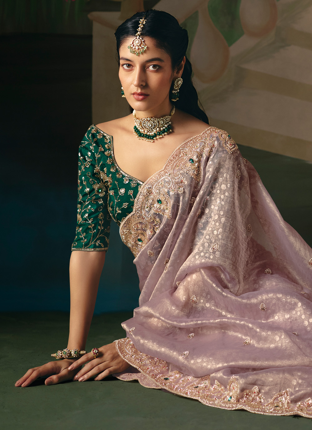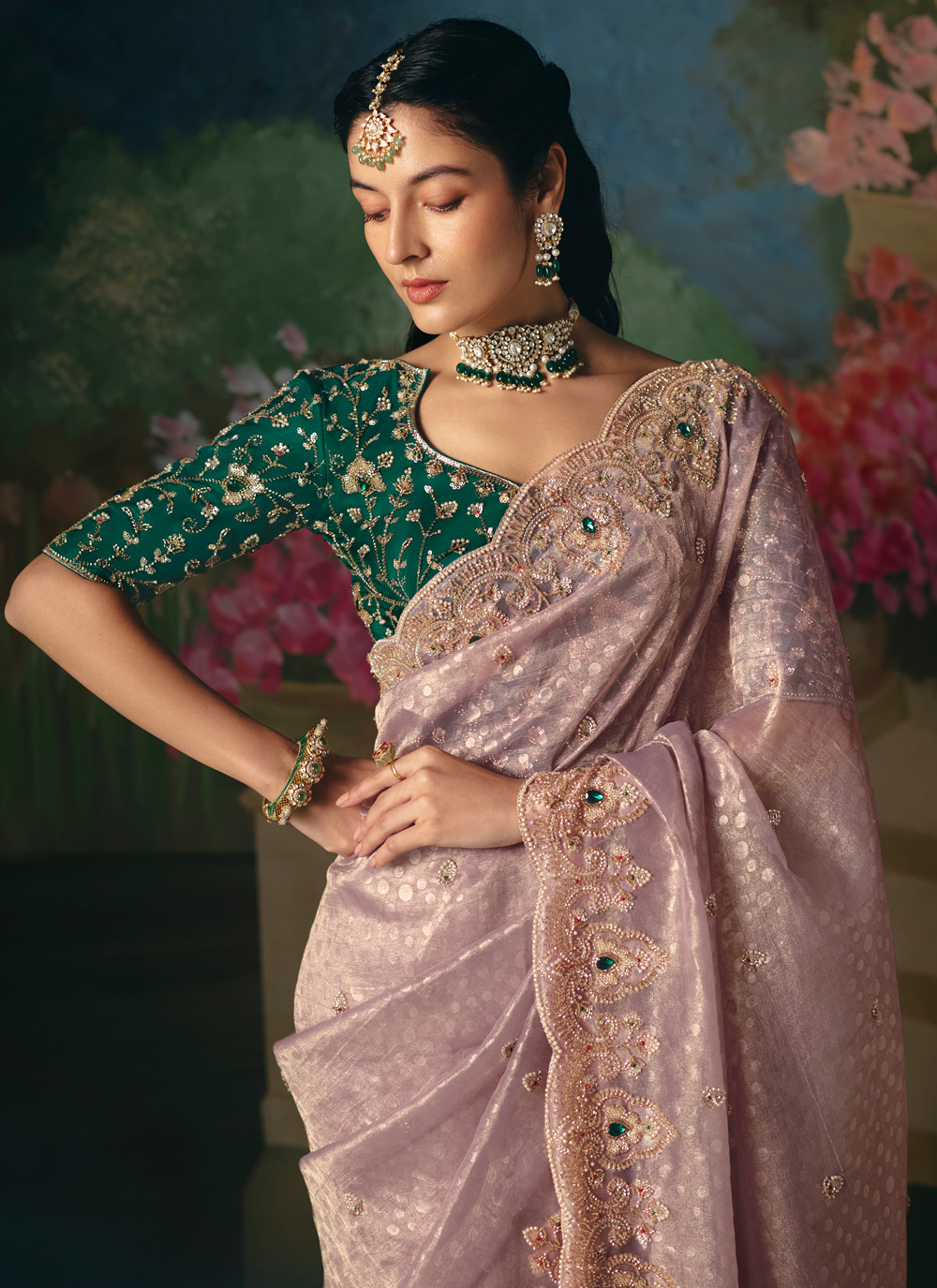 Add modern glamour to your ethnic collection with this Pink Beads Sequins Stone Embroidered Fancy Fabric Contemporary Saree. Designed with intricate embroidery, shimmering sequins, delicate bead accents and sparkling stone work, this saree radiates sophistication. Comes with matching blouse.