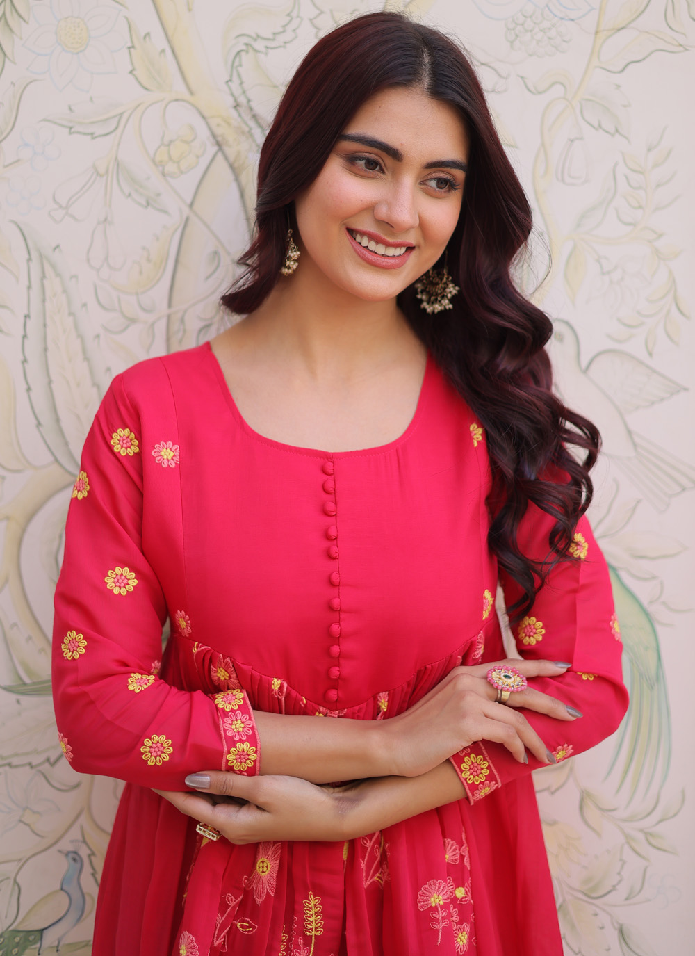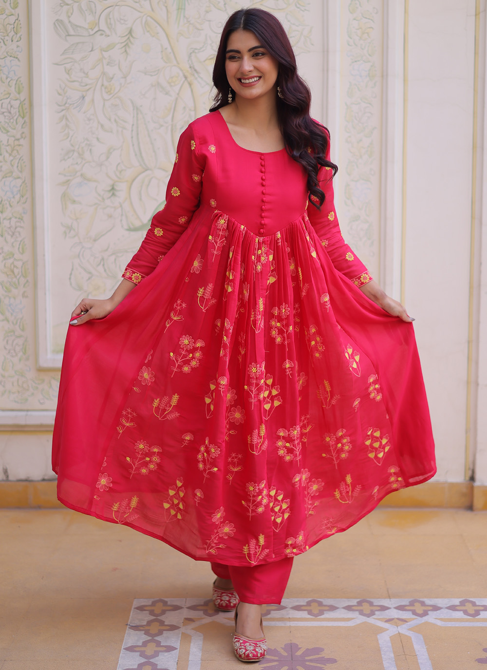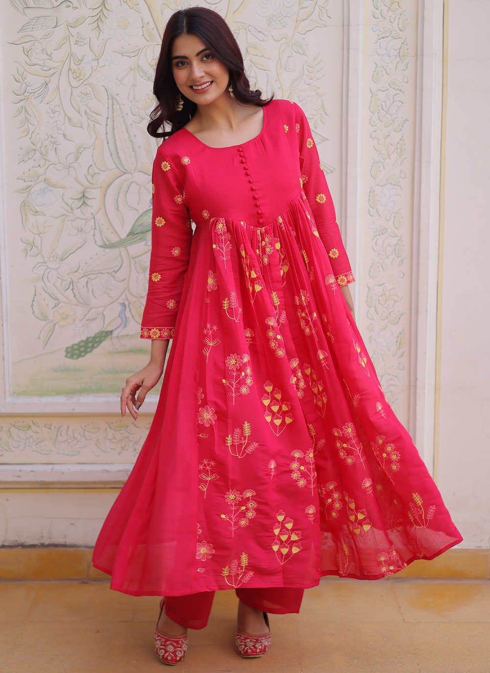 A graceful Pink Chanderi Thread Embroidered Readymade Kurti designed to bring elegance to everyday ethnic wear. Crafted from lightweight Chanderi fabric, the kurti features delicate embroidery that enhances its soft pink shade. Comes with matching bottom.