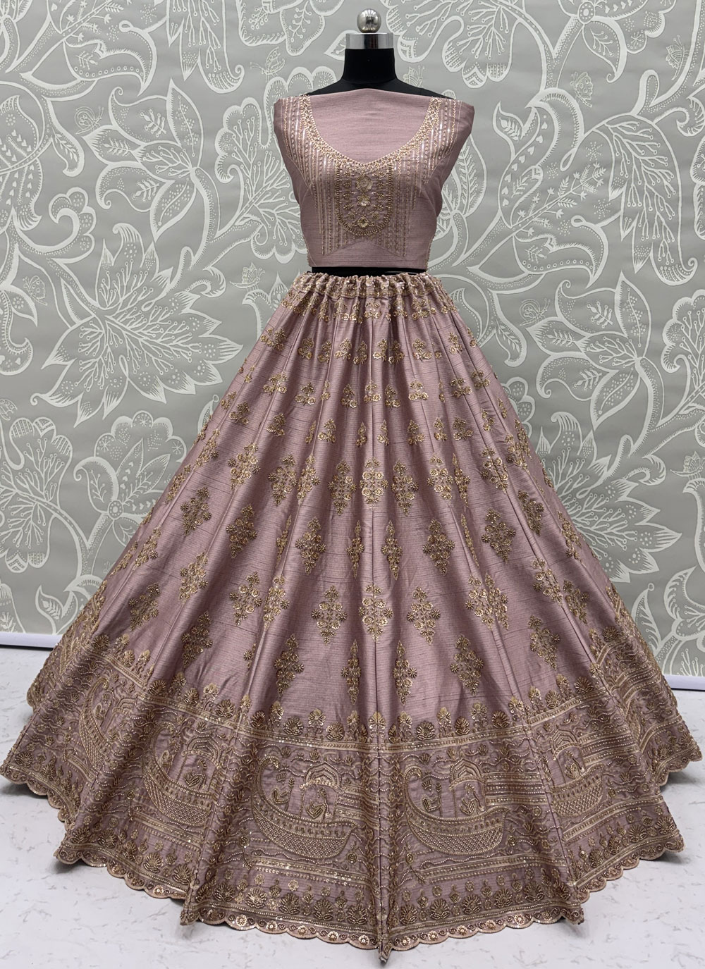 Celebrate memorable moments with this Pink Silk Designer Lehenga Choli adorned with elegant hand embroidery. The detailed sequins and zari patterns highlight traditional artistry while the smooth silk fabric enhances the outfit’s graceful flow. Comes with matching choli and dupatta.