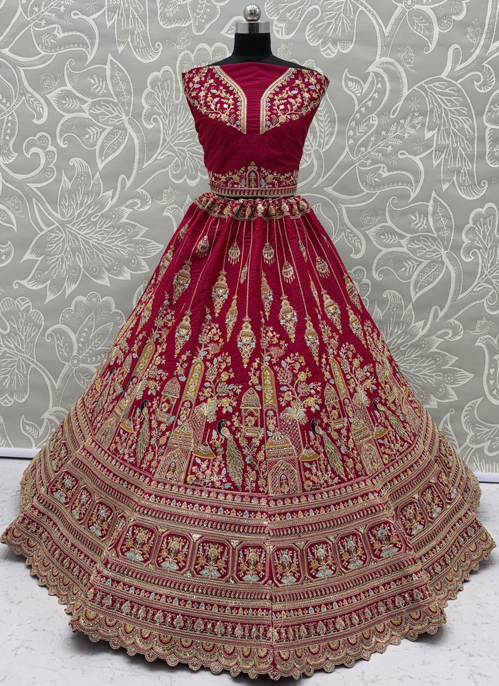 Celebrate special occasions in elegance with this Pink Multi Thread Zari Dori Embroidered Diamond Work Silk Wedding Lehenga Choli. The soft pink colour paired with detailed embroidery creates a graceful and sophisticated ethnic outfit ideal for weddings, receptions and festive ceremonies. Comes with matching choli and dupatta.