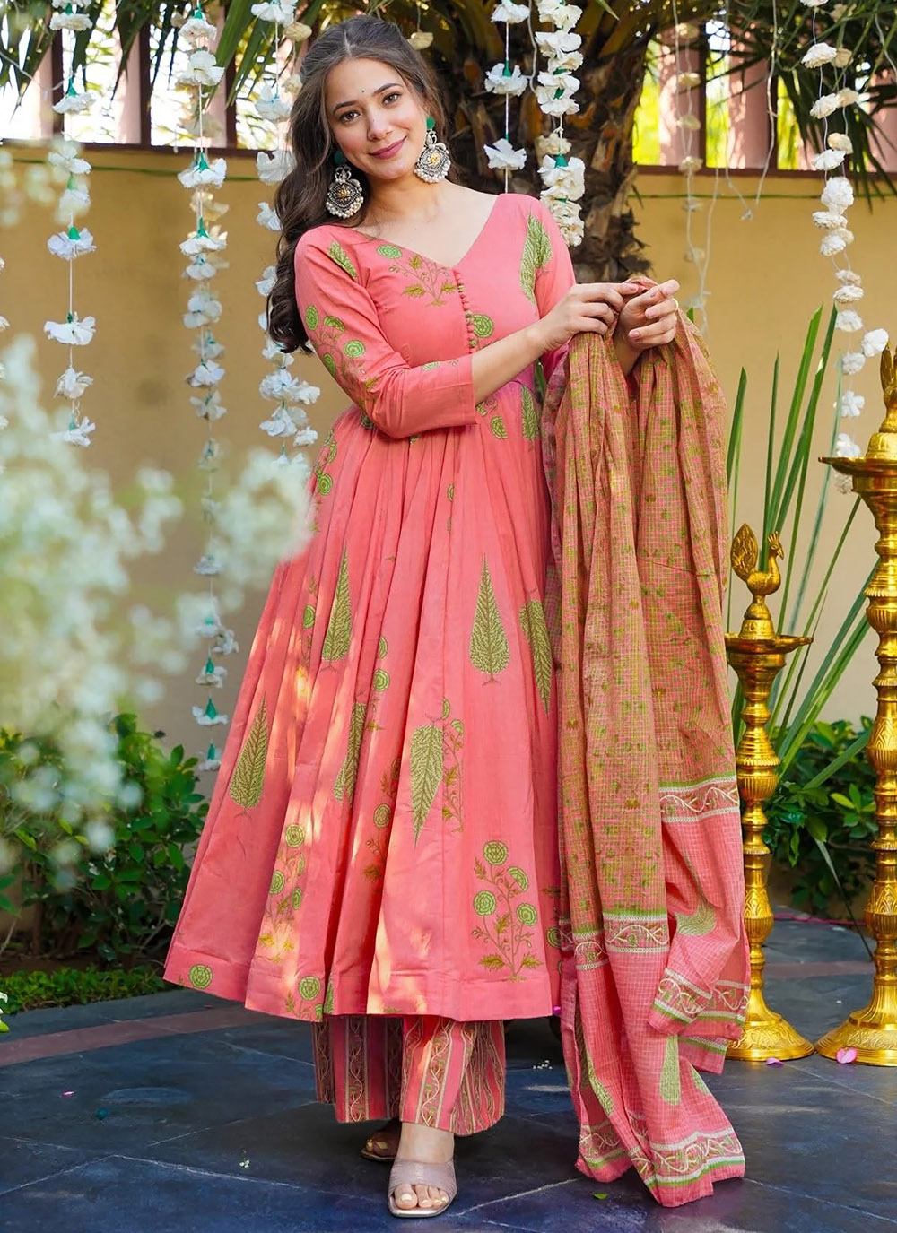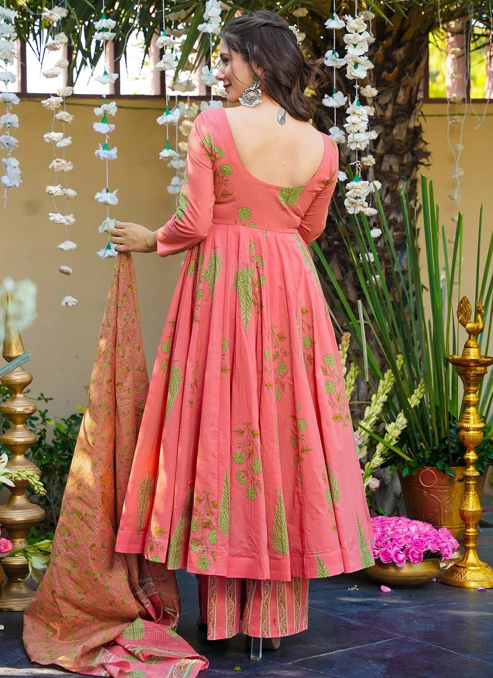 This pink muslin printed readymade palazzo suit brings together comfort and effortless style. Crafted from lightweight muslin fabric, it feels soft on the skin while the delicate print adds a fresh and graceful touch. Comes with matching bottom and dupatta.