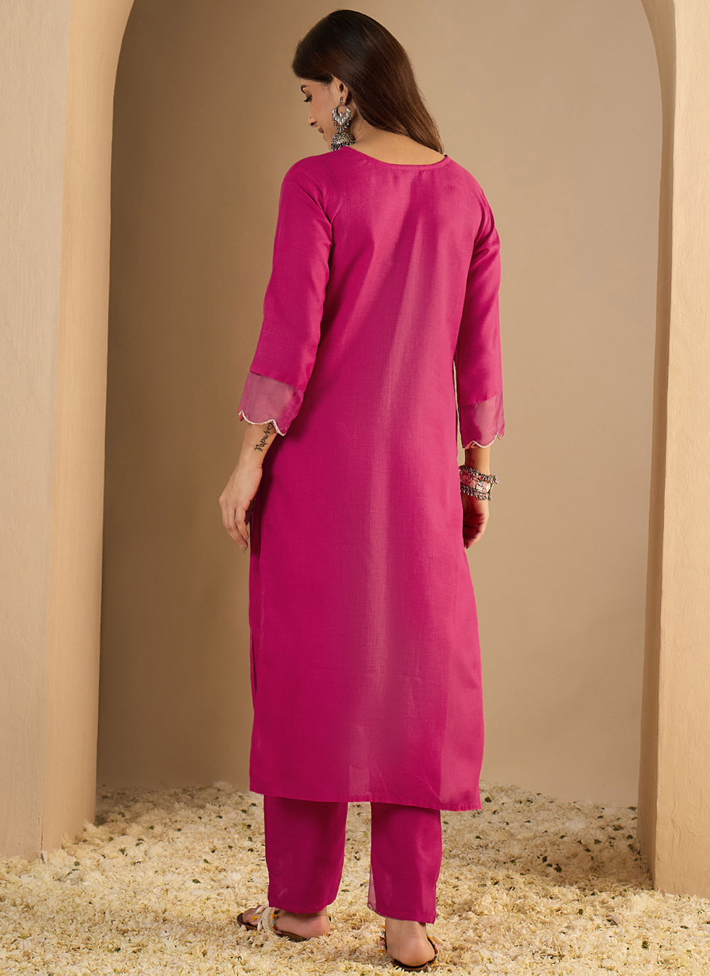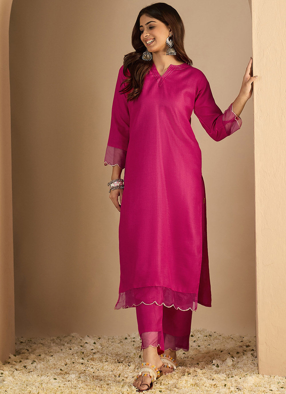 Refresh your ethnic style with this Pink Plain Cotton Blend Party Wear Kurti that blends simplicity with sophistication. The elegant pink shade brings a bright and cheerful charm suitable for festive events and casual celebrations.