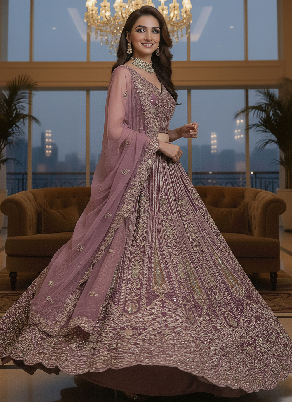 Crafted for women who love glamorous ethnic wear, this pink net lehenga choli delivers a perfect balance of shine and tradition. The sequins add a luminous touch, and the zarkan and zari detailing elevate it further—ideal for pre-wedding functions. Comes with matching choli and dupatta.