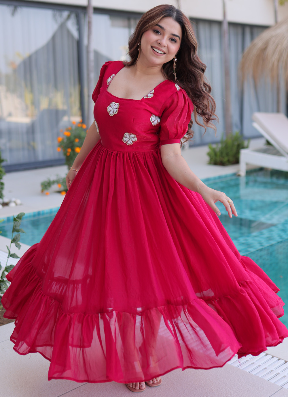 Add a touch of glamour to your collection with this Pink Silk Trendy Gown with Beads Embroidered Work. Designed to offer both comfort and elegance, it’s a standout choice for modern celebrations.