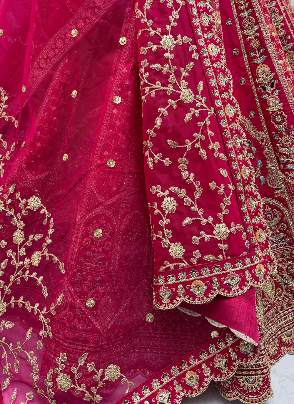 Pink Silk Lace Thread Zari Sequins Embroidered Bridal Lehenga Choli showcases a graceful blend of elegance and traditional bridal artistry. Crafted from rich silk fabric, the outfit is adorned with delicate lace, intricate thread work, shimmering zari, and fine sequins embroidery. Comes with matching choli and dupatta.