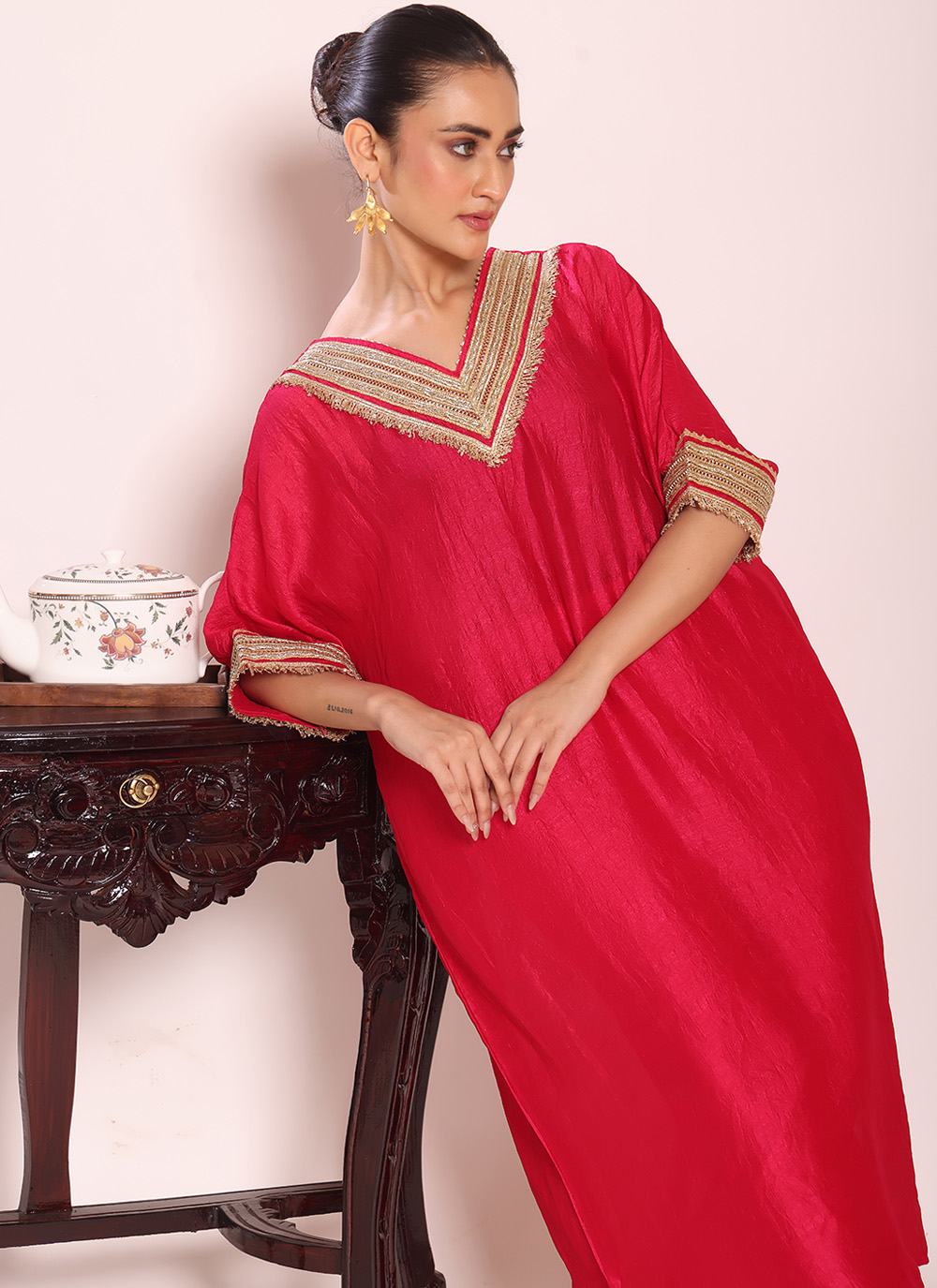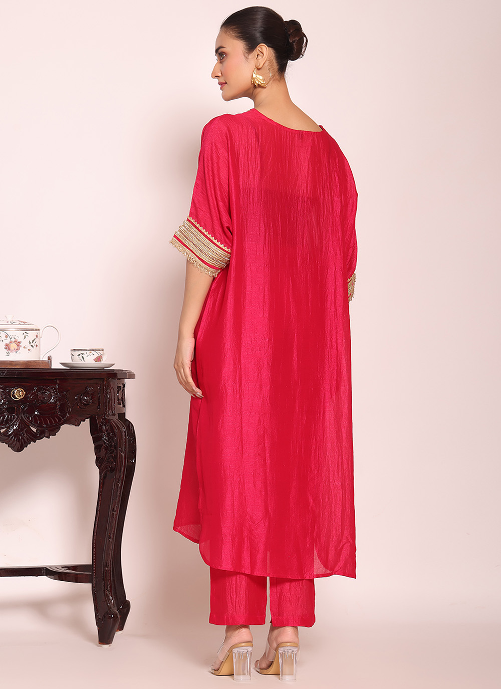 This Poly Silk Red Embroidered Festival Wear Kurti is a perfect blend of traditional craftsmanship and modern comfort. The premium poly silk fabric gives a polished finish, while the intricate embroidery adds a rich and festive touch.