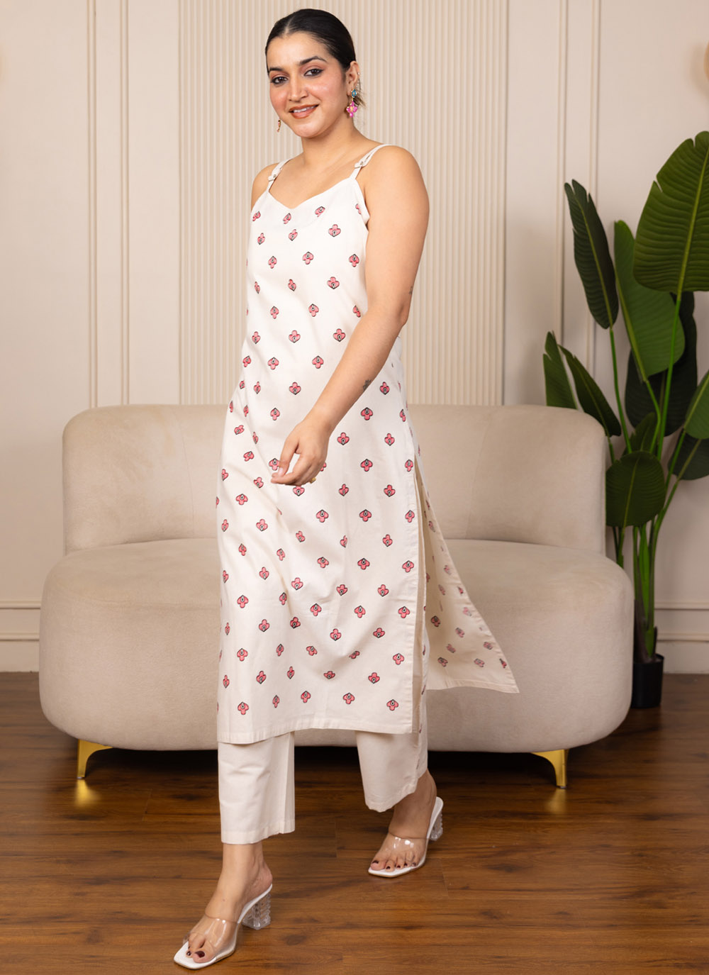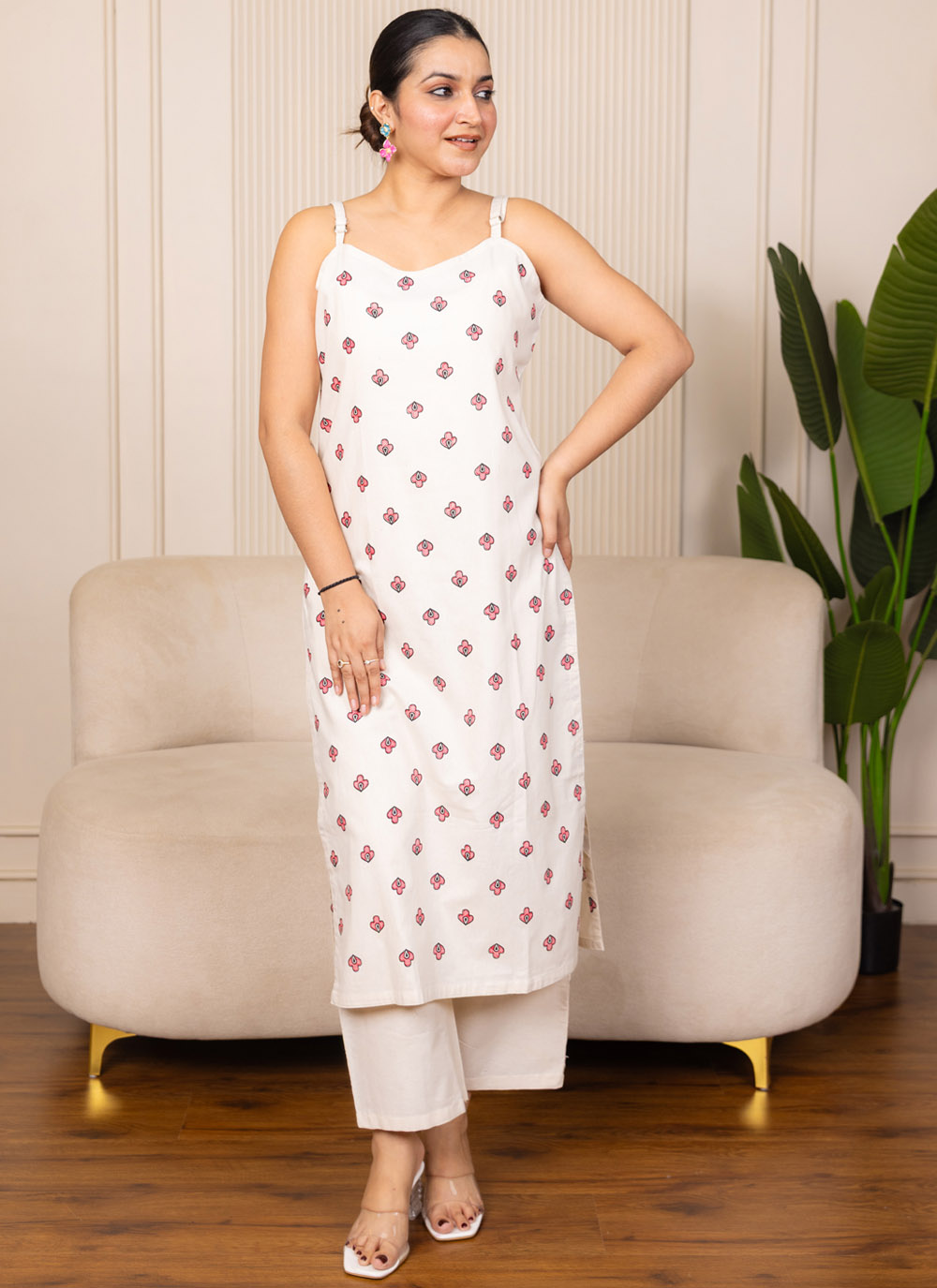 Add effortless elegance to your wardrobe with this Printed Cotton Trendy Kurti in Off White. The soothing off white base beautifully highlights the delicate printed patterns, creating a stylish and refreshing ethnic look.