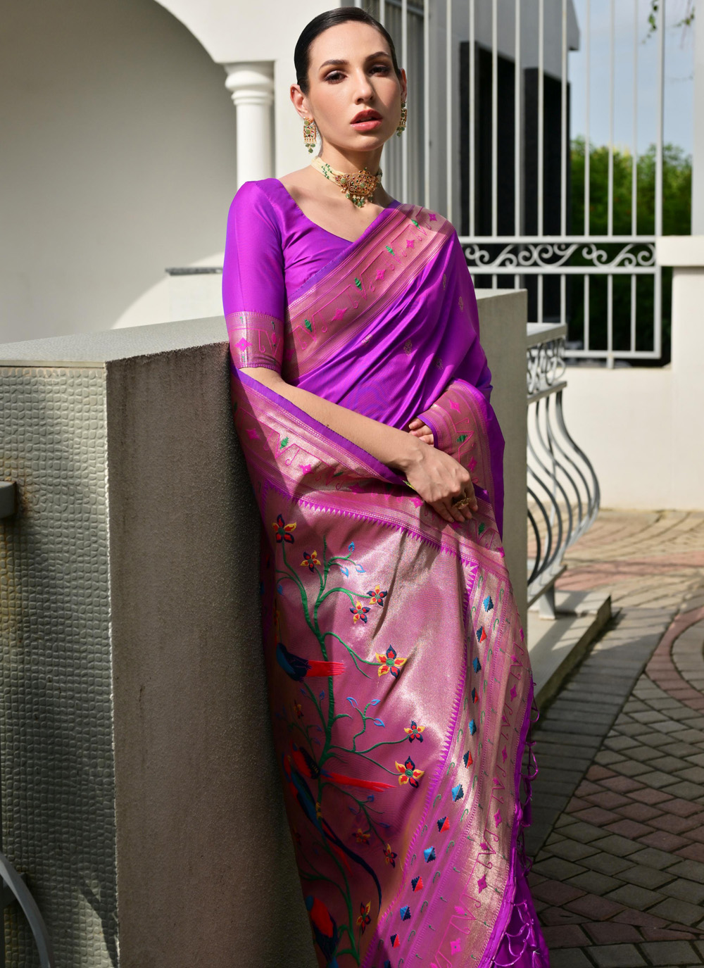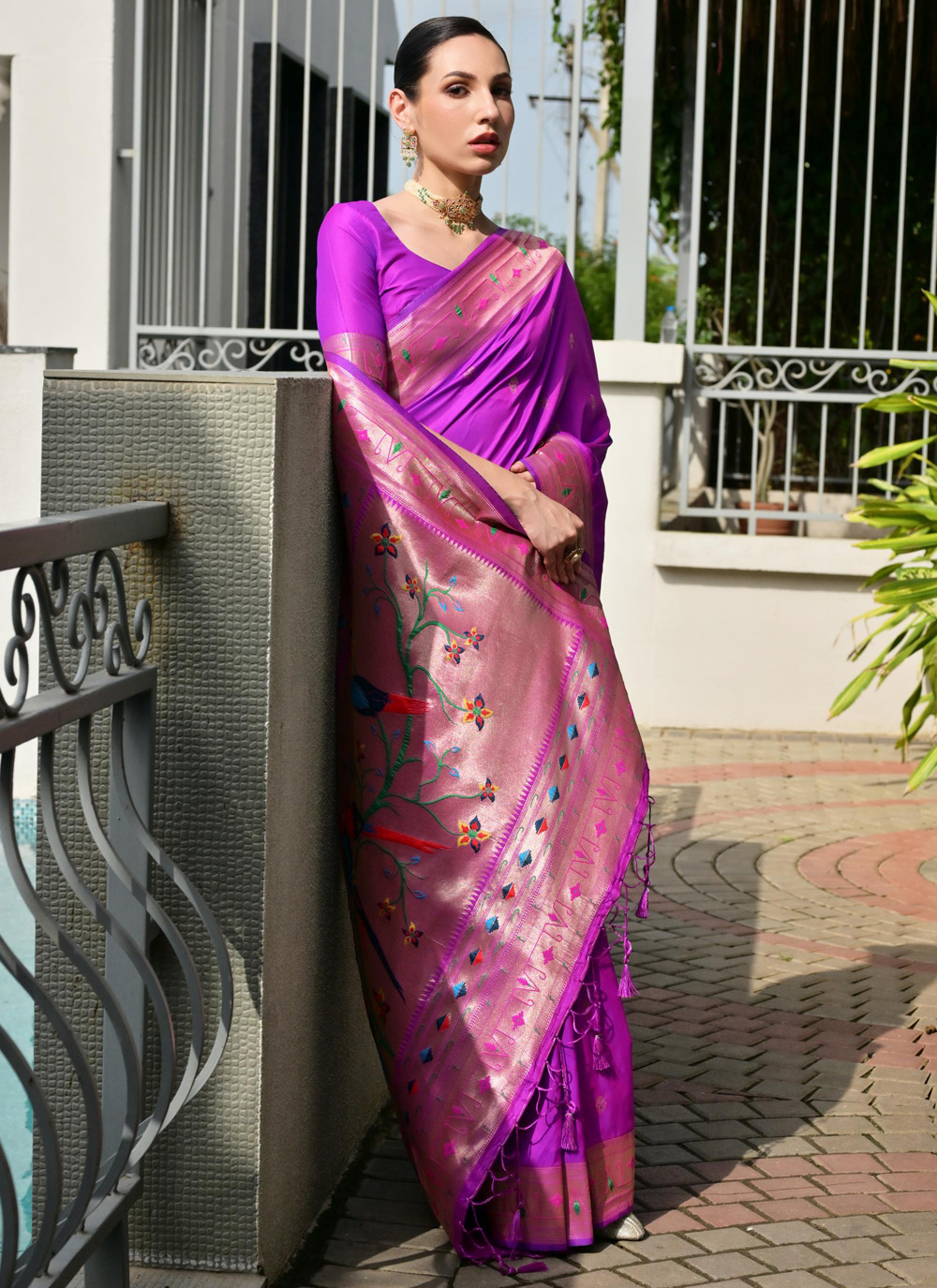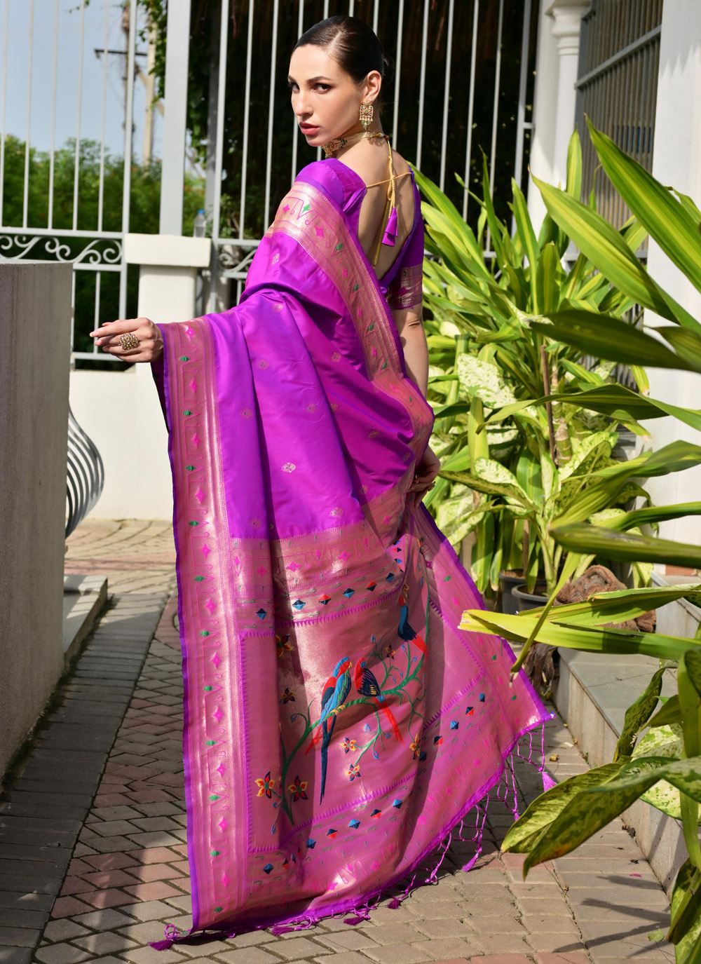 This purple Banarasi silk saree reflects royal elegance with its rich silk fabric and intricate meenakari zari woven work. A timeless choice for weddings, festivals and traditional ceremonies. Comes with matching blouse.