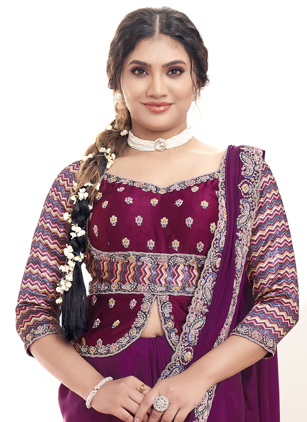 Elevate your ethnic wear collection with this stylish purple saree, intricately embroidered with shimmering zari and delicate moti. The soft drape and rich finish make it ideal for weddings, receptions, and festive gatherings. Comes with matching blouse.