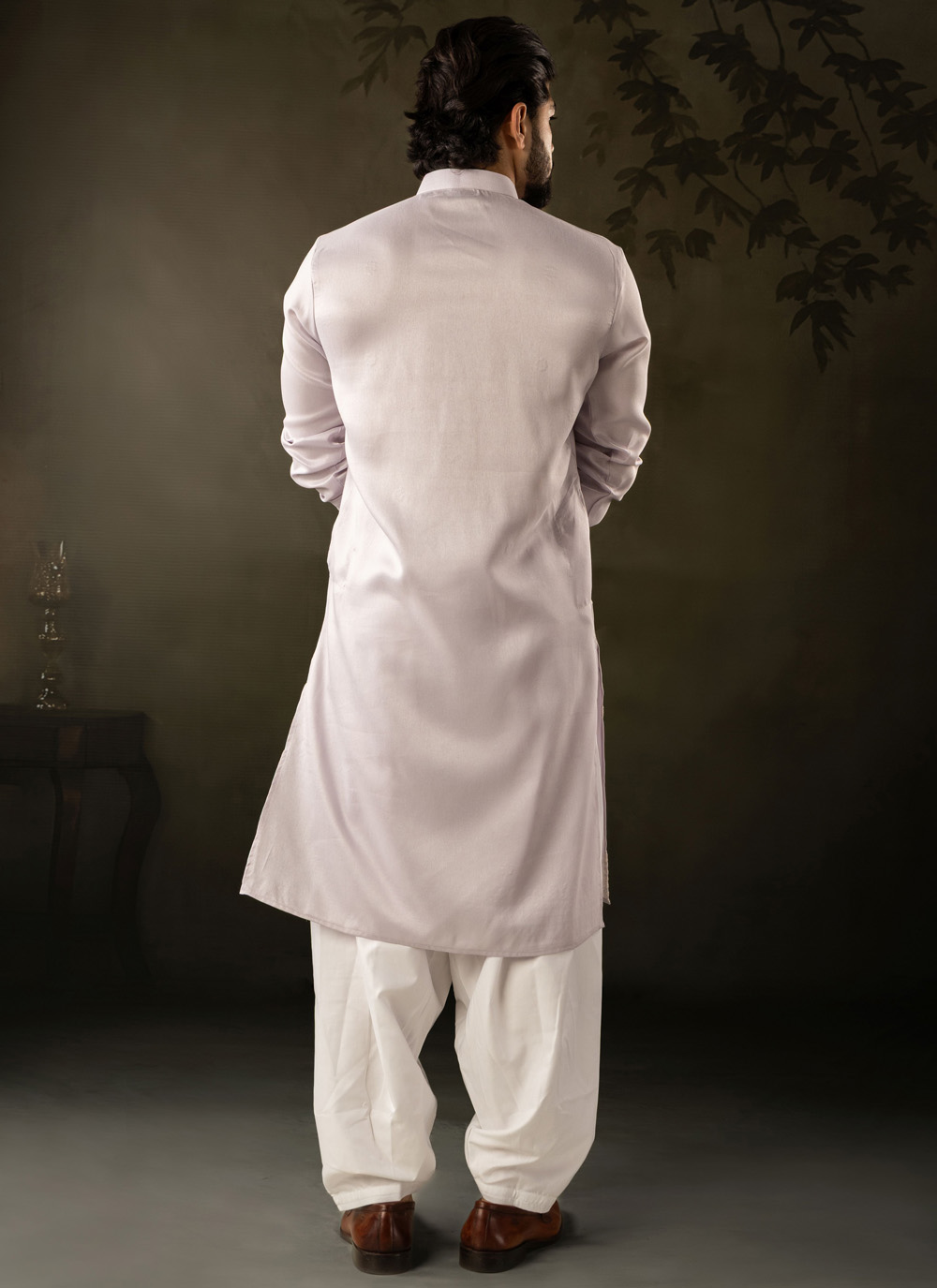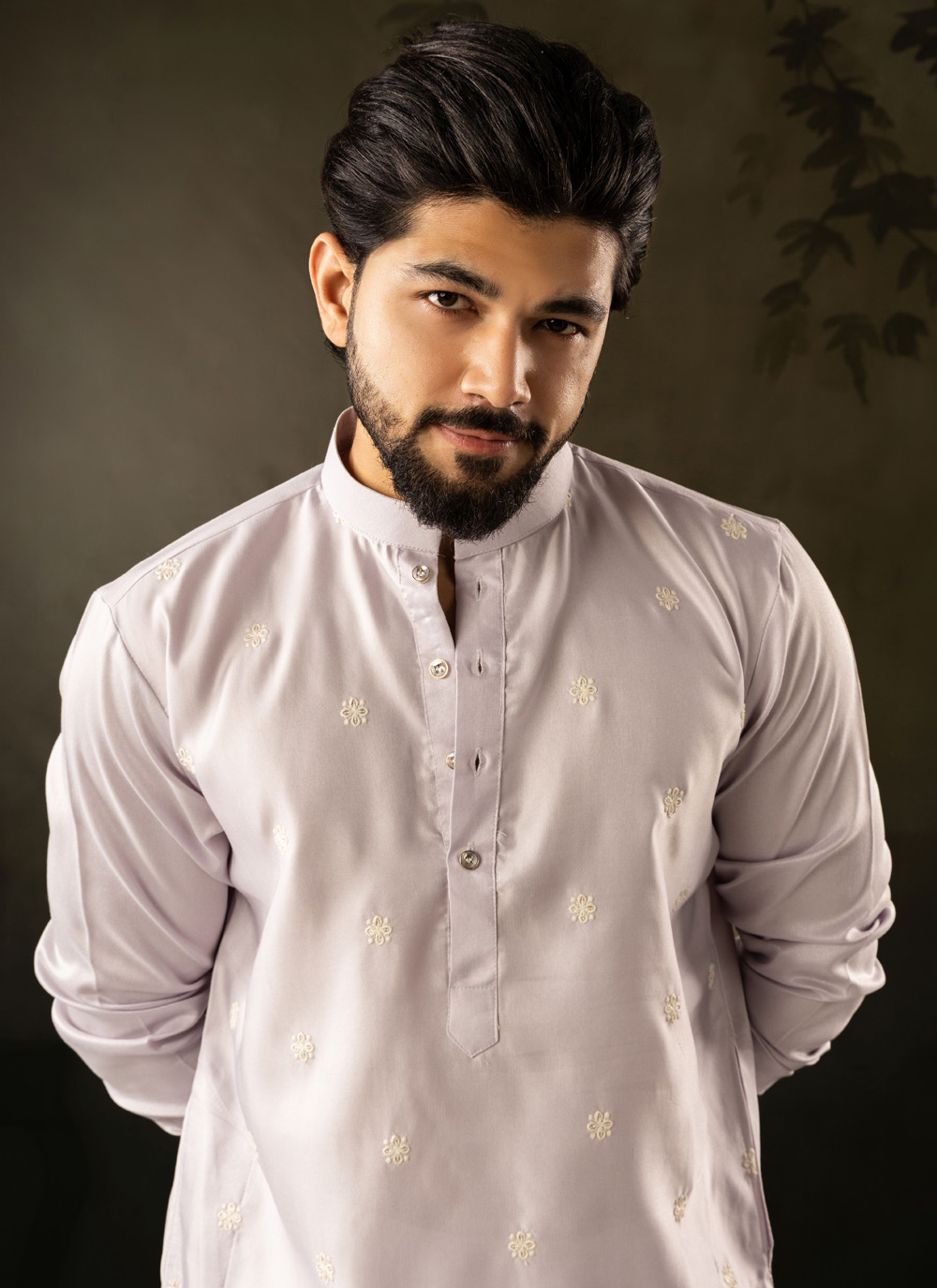 Add a regal touch to your festive wardrobe with this purple embroidered rayon kurta pyjama for men. The rich purple shade reflects sophistication, while the fine embroidery enhances its traditional appeal.