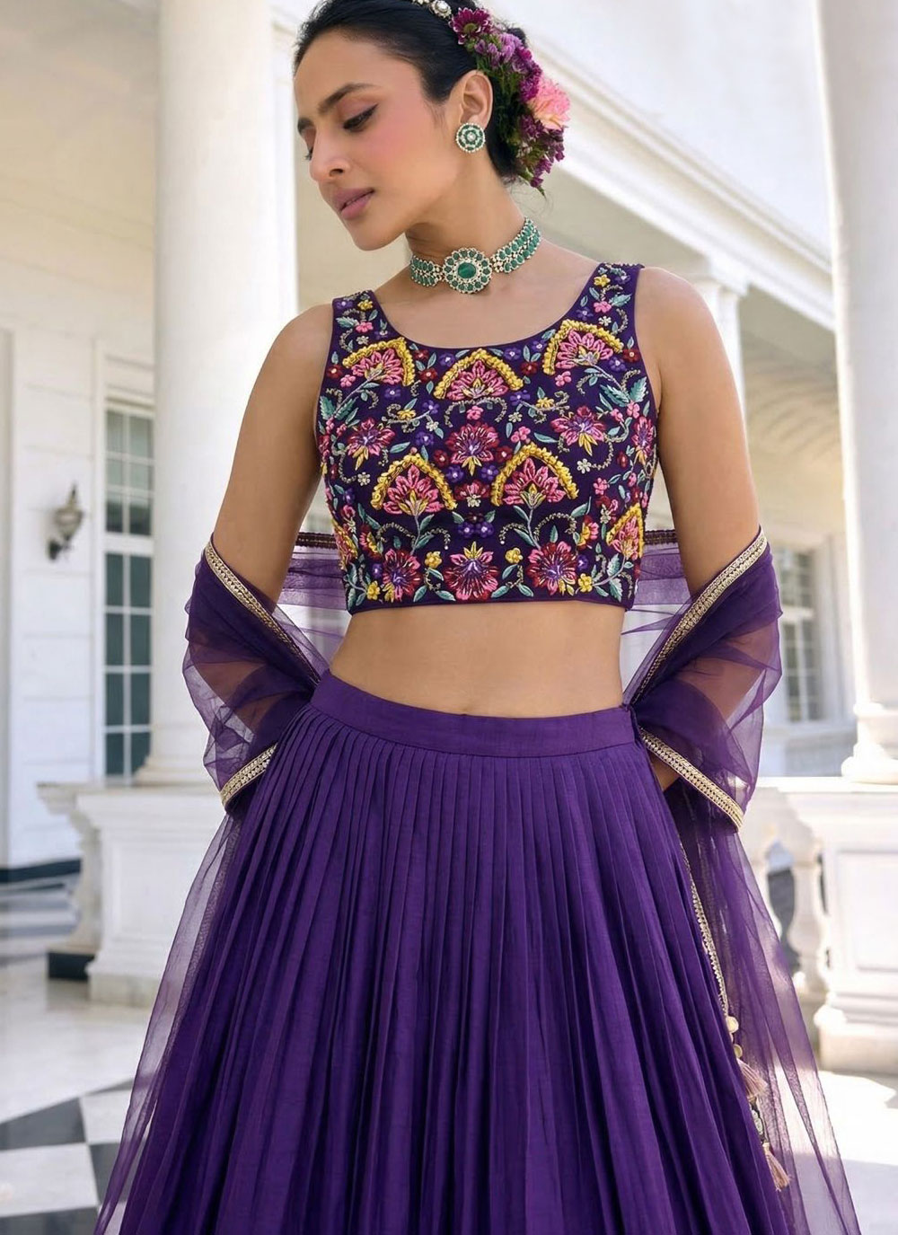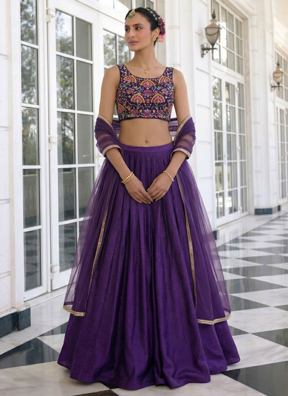 The Purple Vichitra Silk Plain Work Lehenga Choli highlights classic fashion with a modern touch. The smooth silk texture and simple design allow the vibrant color to stand out beautifully. Comes with matching choli and dupatta.