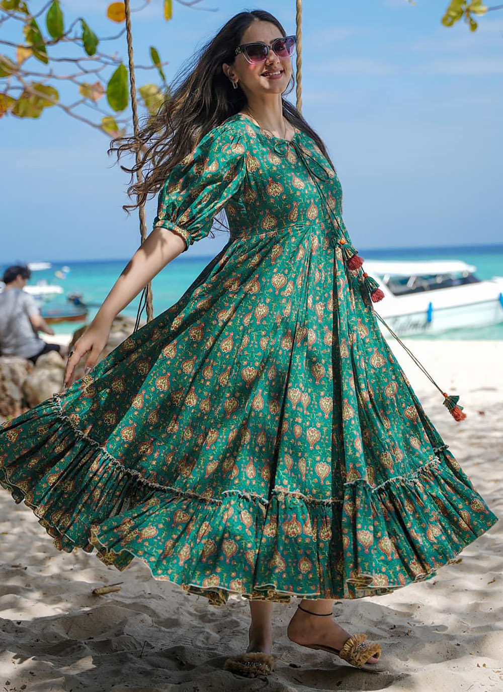 Elevate your daily ethnic wear with this designer kurti in rama green, styled with eye-catching digital prints. Its soft texture, trendy color, and custom-fit stitching make it perfect for the modern woman on the move.