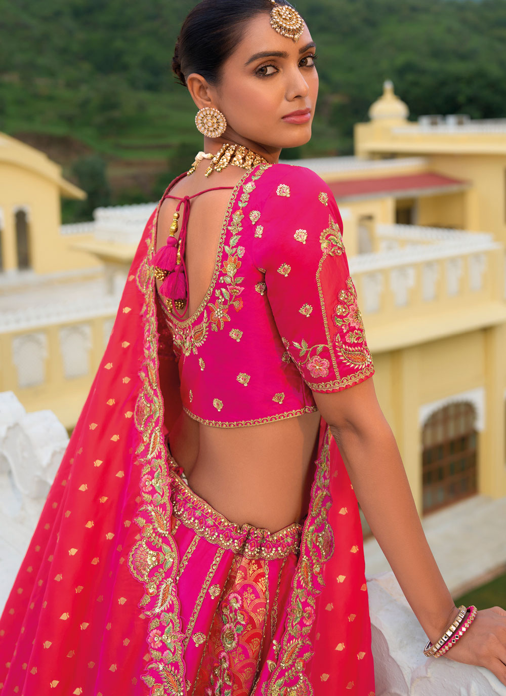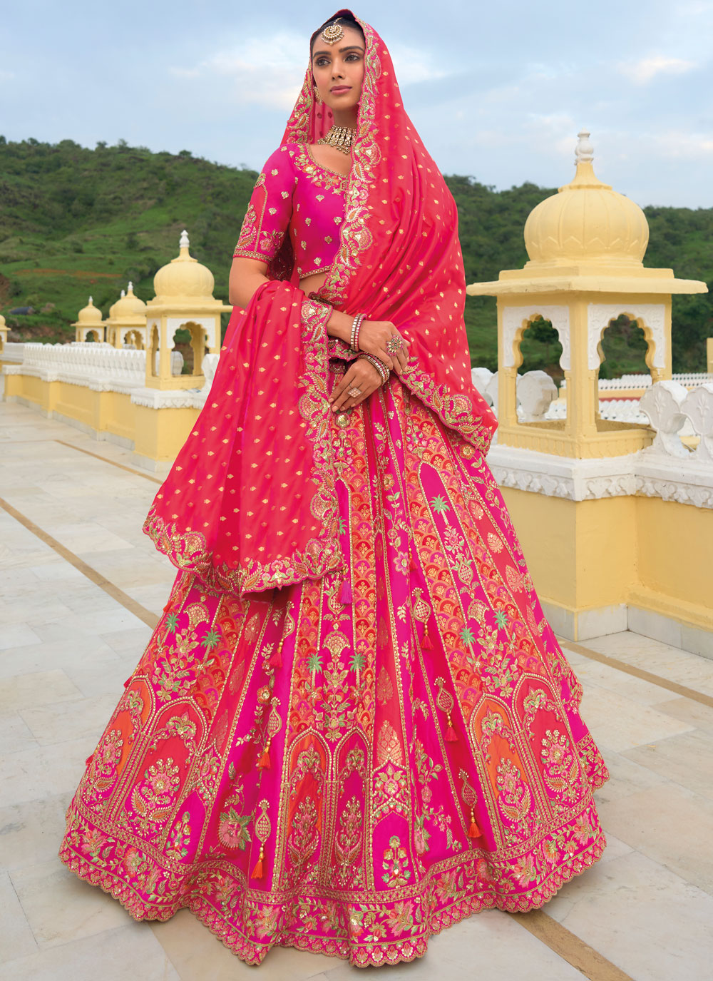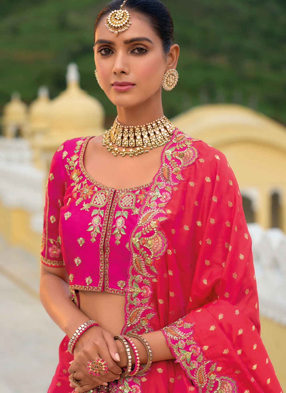 The Red and Rani Color Silk Lehenga Choli with Zari Work is a vibrant and elegant piece, perfect for weddings and festive occasions. Crafted from luxurious silk, the lehenga features intricate zari work that adds a touch of grandeur. The rich red and rani colors enhance its charm, while the matching choli and dupatta complete the look for a flawless, traditional outfit.
