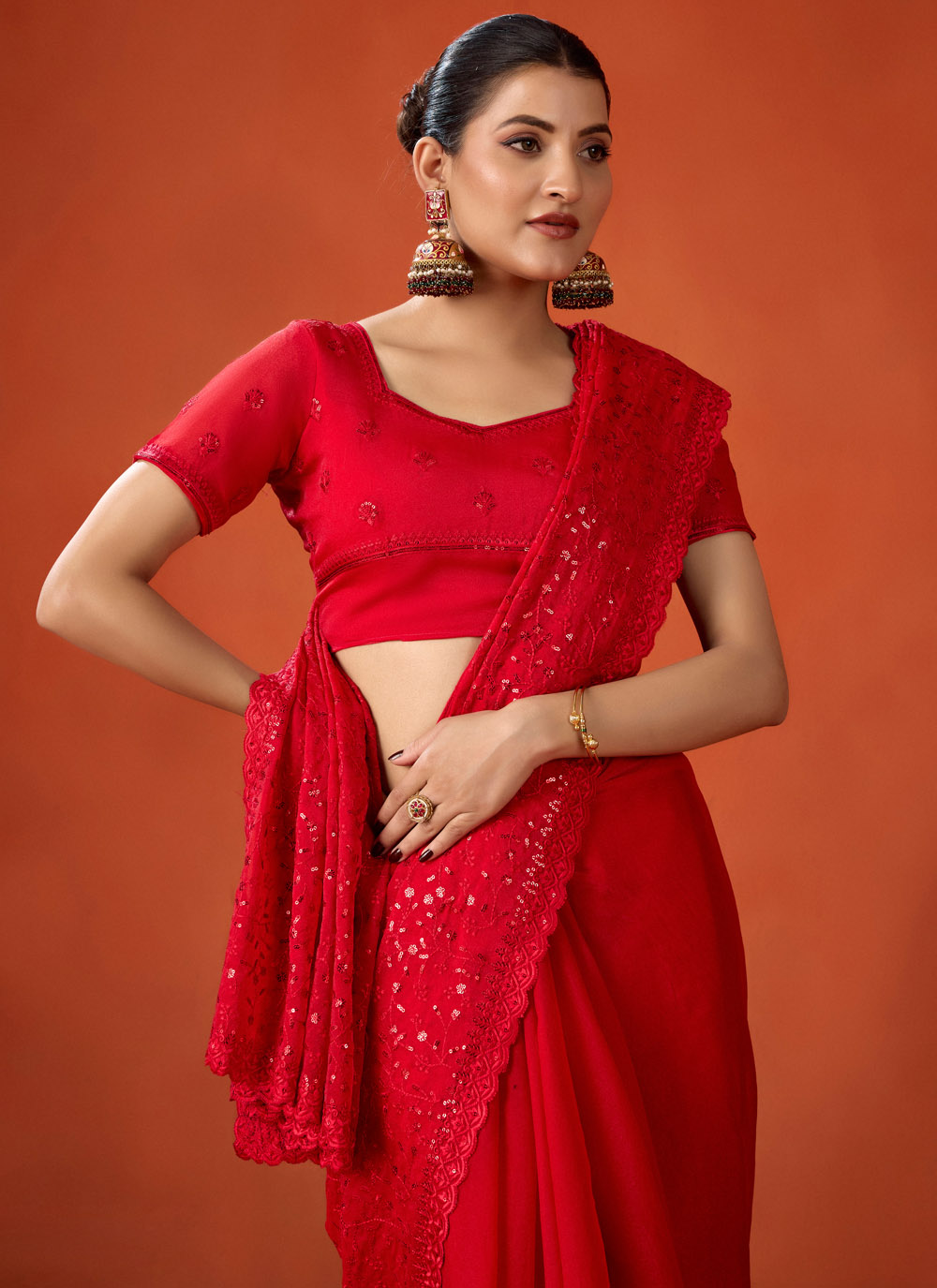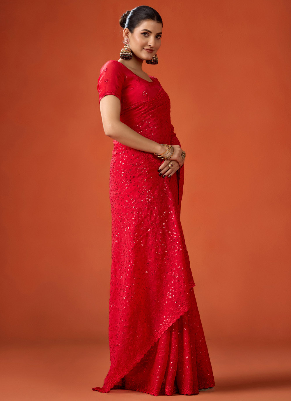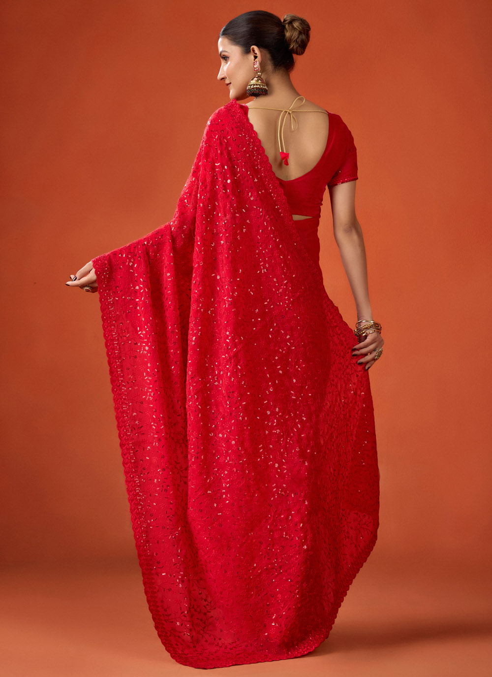 This Traditional Saree in moss cream features fine embroidery highlighted with subtle sequins work. Its elegant color and refined detailing make it an ideal choice for festive occasions and functions. Comes with matching blouse.