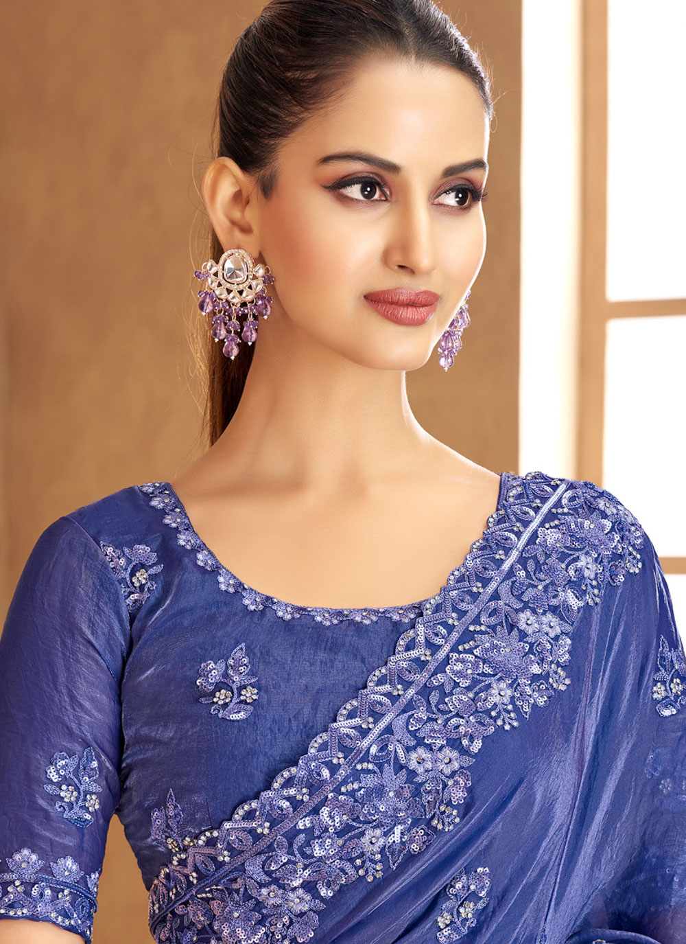 The Satin Blue Cutwork Sequins Embroidered Saree combines elegance and glamour. Crafted from rich satin in a deep blue shade, it features intricate cutwork and sparkling sequins, making it perfect for weddings and evening events. The saree drapes beautifully and includes a matching blouse piece for customization.