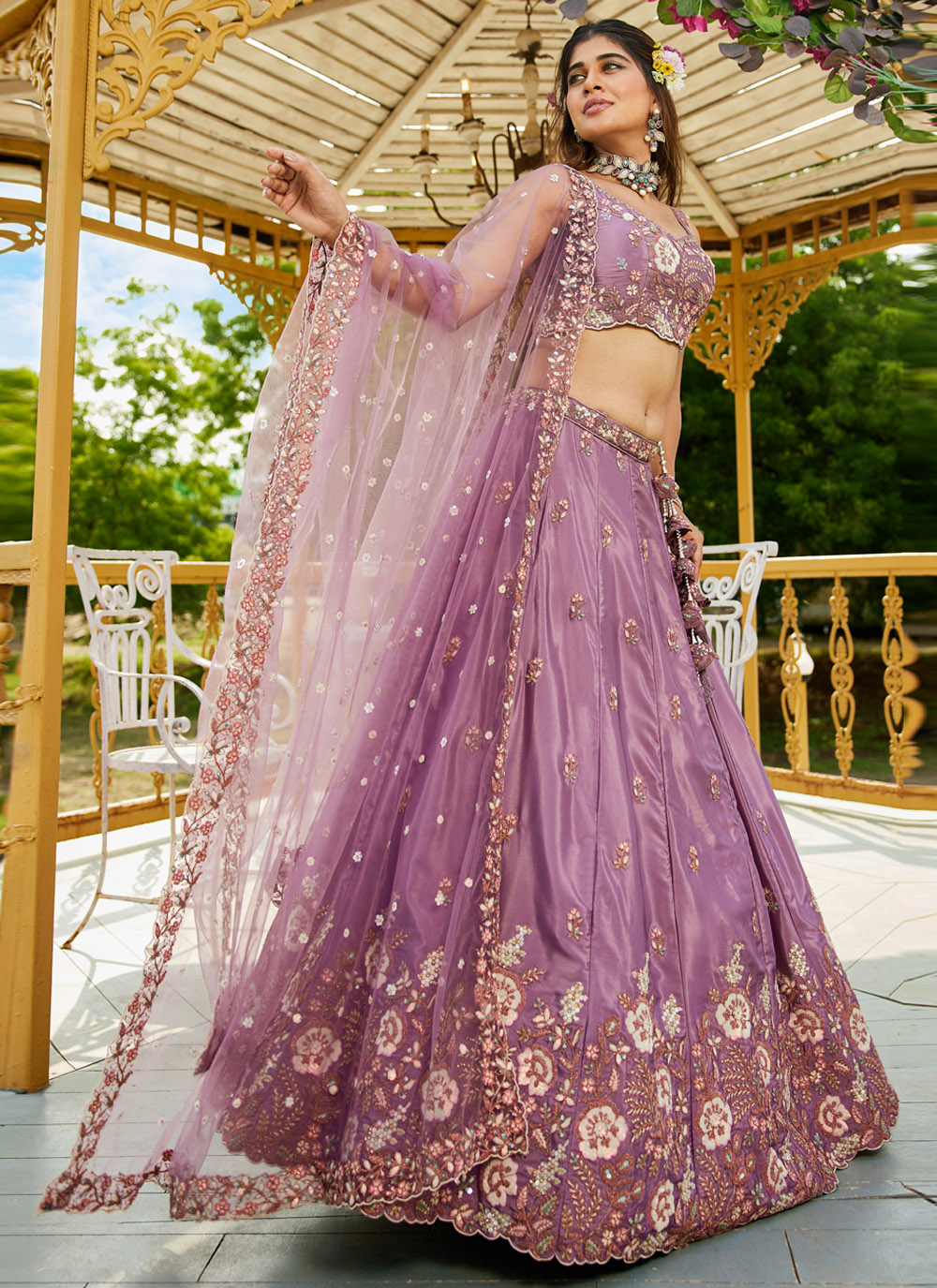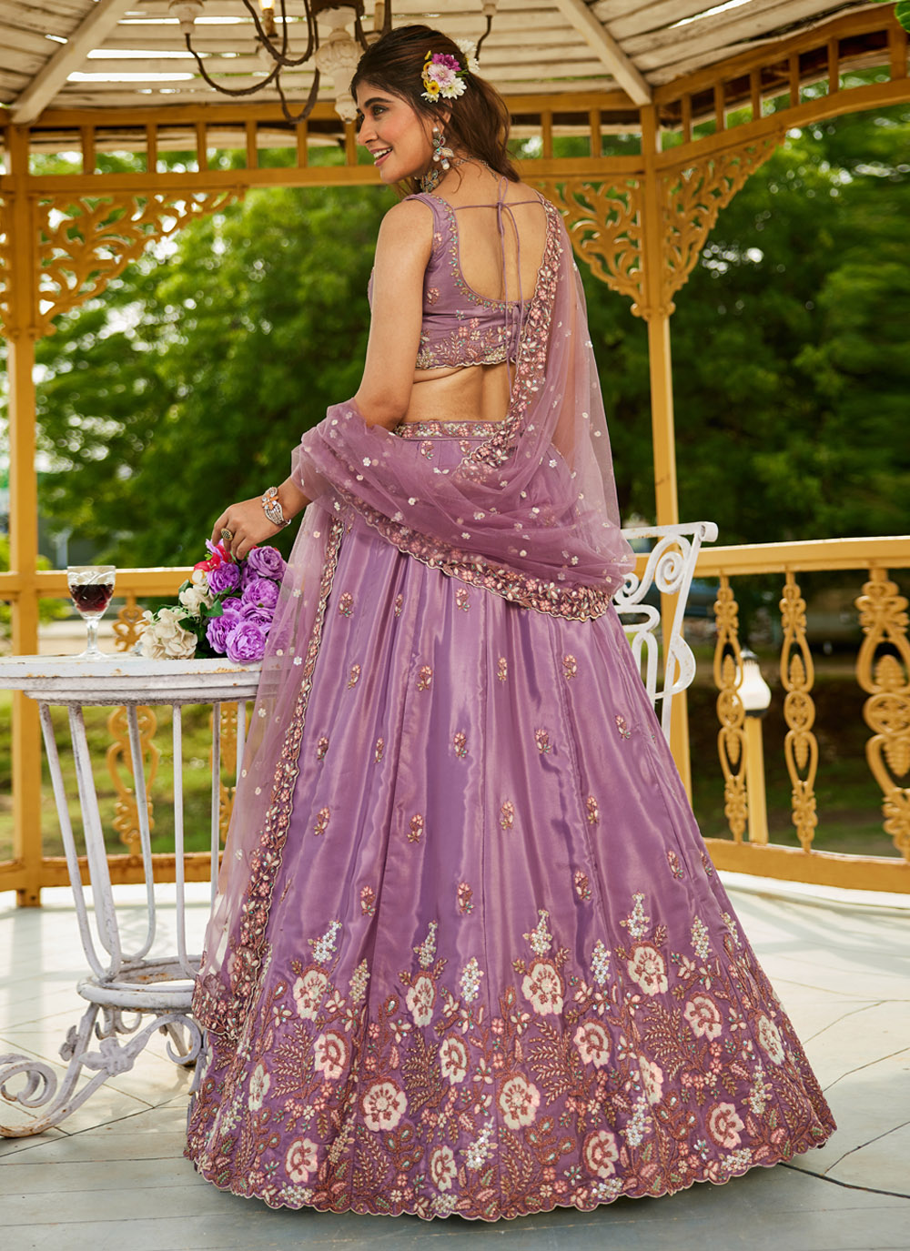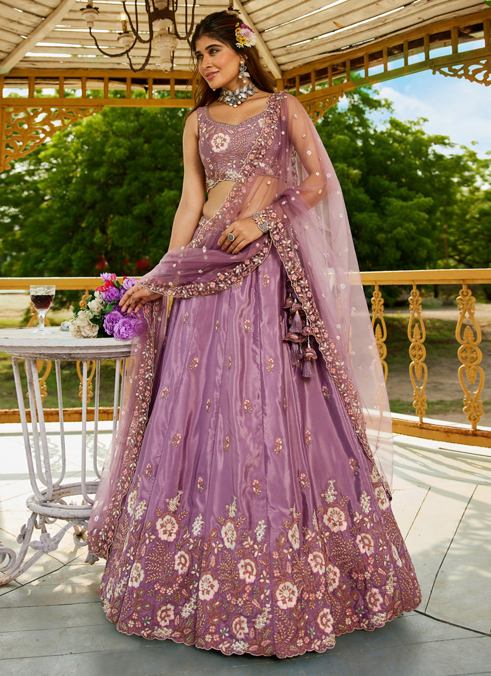 Step into elegance with this Satin Mauve Lehenga Choli, a masterpiece of style and sophistication. Featuring intricate embroidery, shimmering sequins, and rich zari work, this trendy ensemble is crafted for the modern woman who loves to blend tradition with contemporary fashion. Comes with matching choli and dupatta.