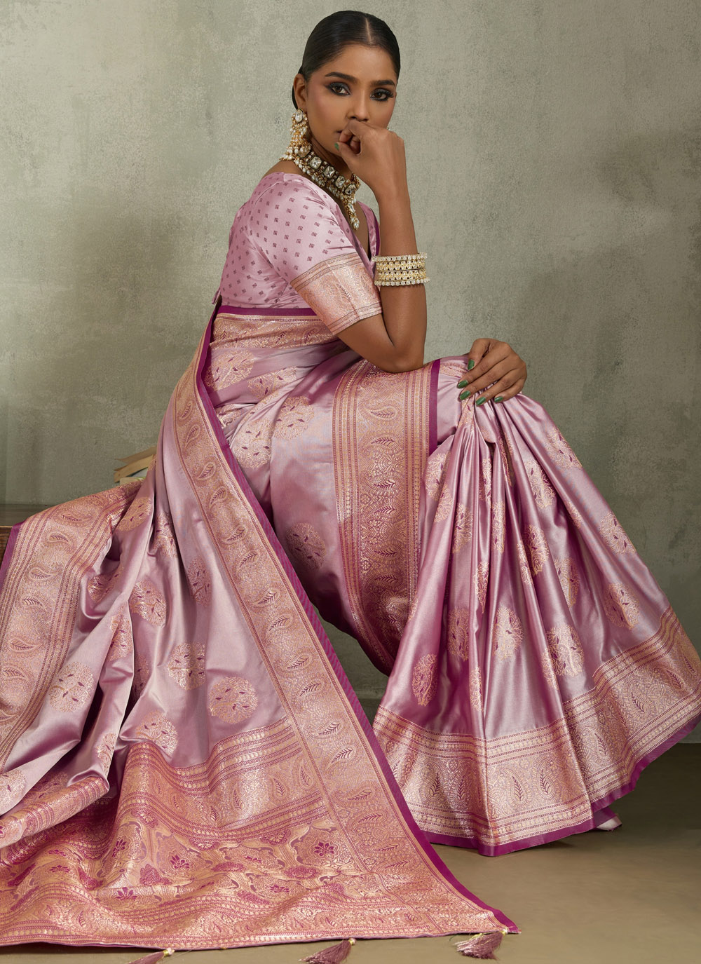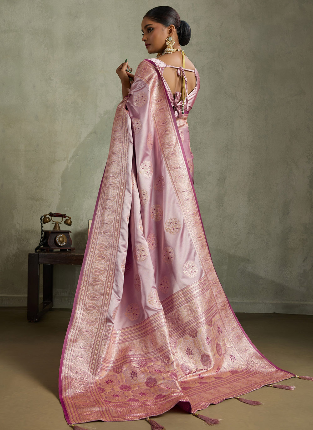 | Work | Banarasi Zari, Border Work, Meenakari, Woven |