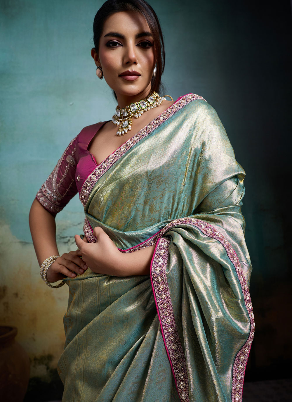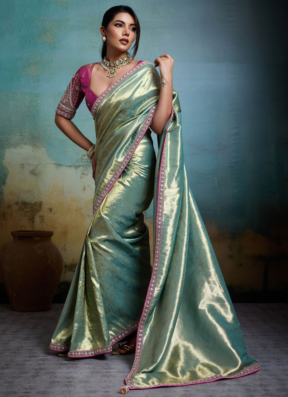 | Fabric | Banarasi Silk, Tissue |