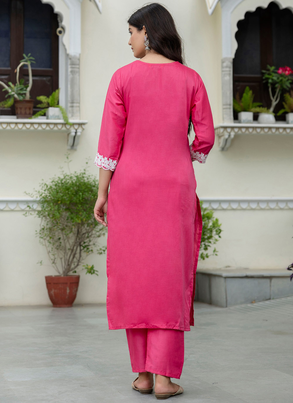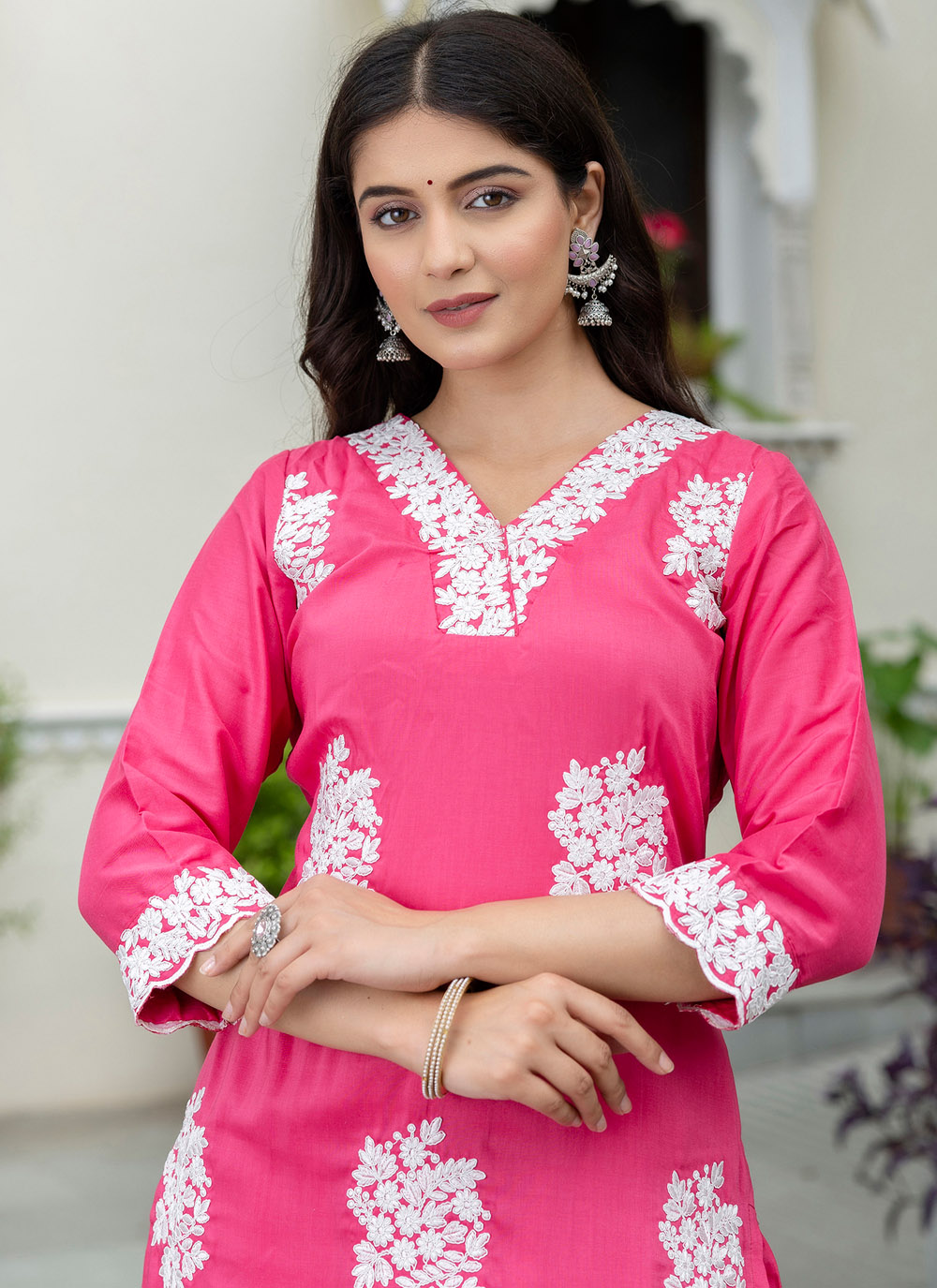 Refresh your ethnic collection with this Silk Blend Embroidered Pink Designer Kurti that reflects elegance and simplicity. The soothing pink shade creates a soft feminine look, while the intricate embroidery highlights fine craftsmanship.
