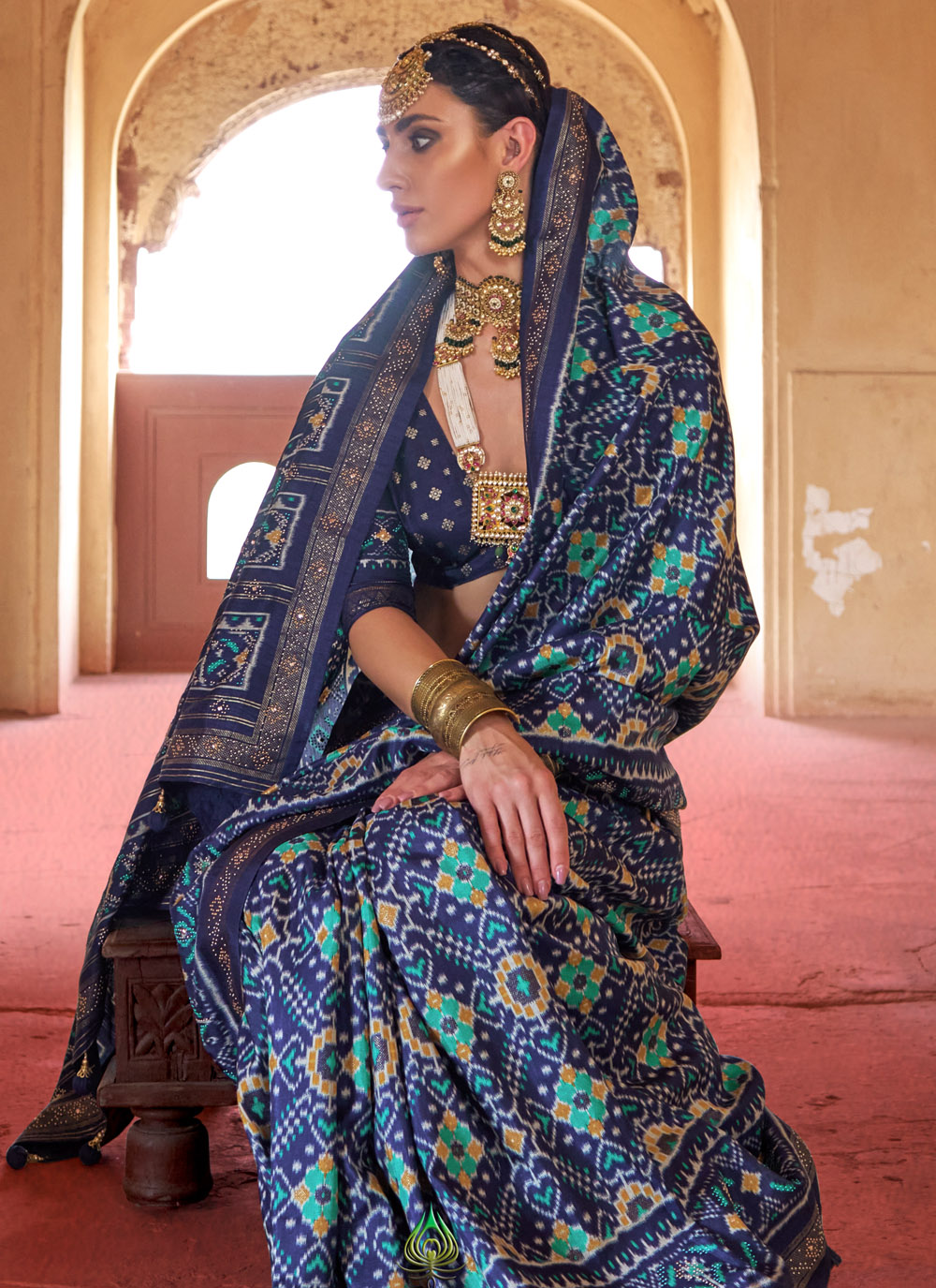 Drape yourself in tradition with this blue Patola printed silk saree, where classic artistry meets luxurious comfort. The fine detailing and bold print speak volumes of Indian heritage, making it an elegant pick for festive wear. Comes with matching blouse.