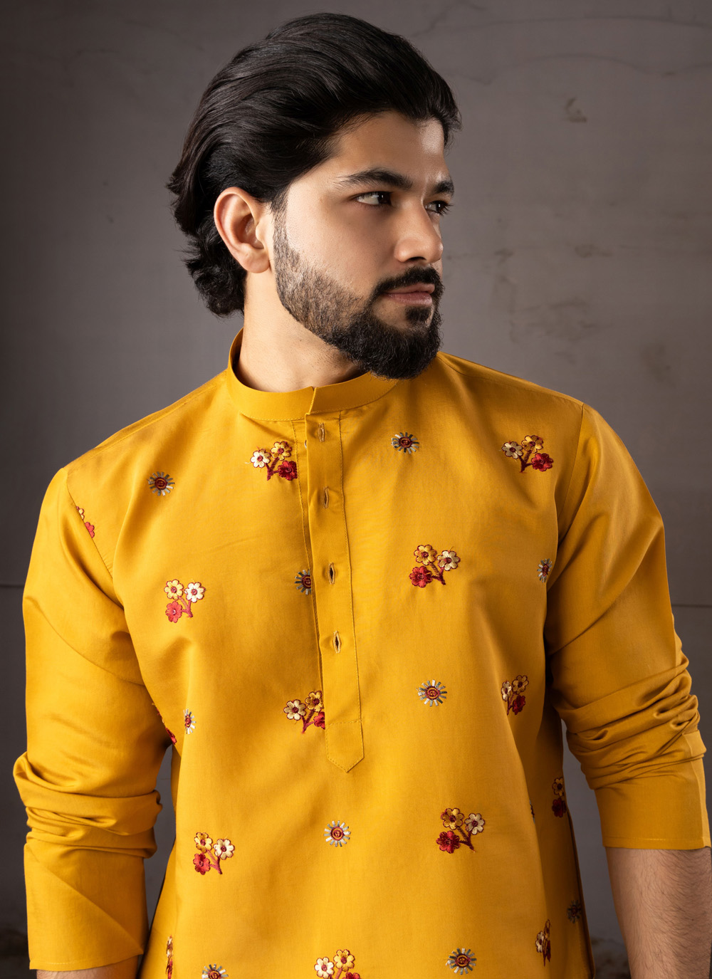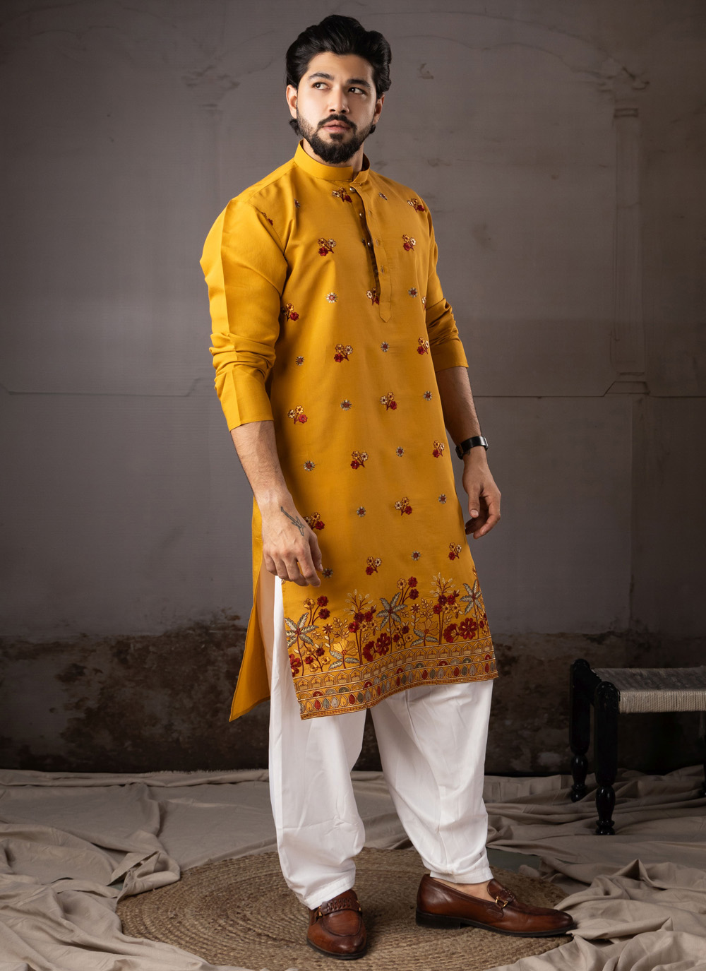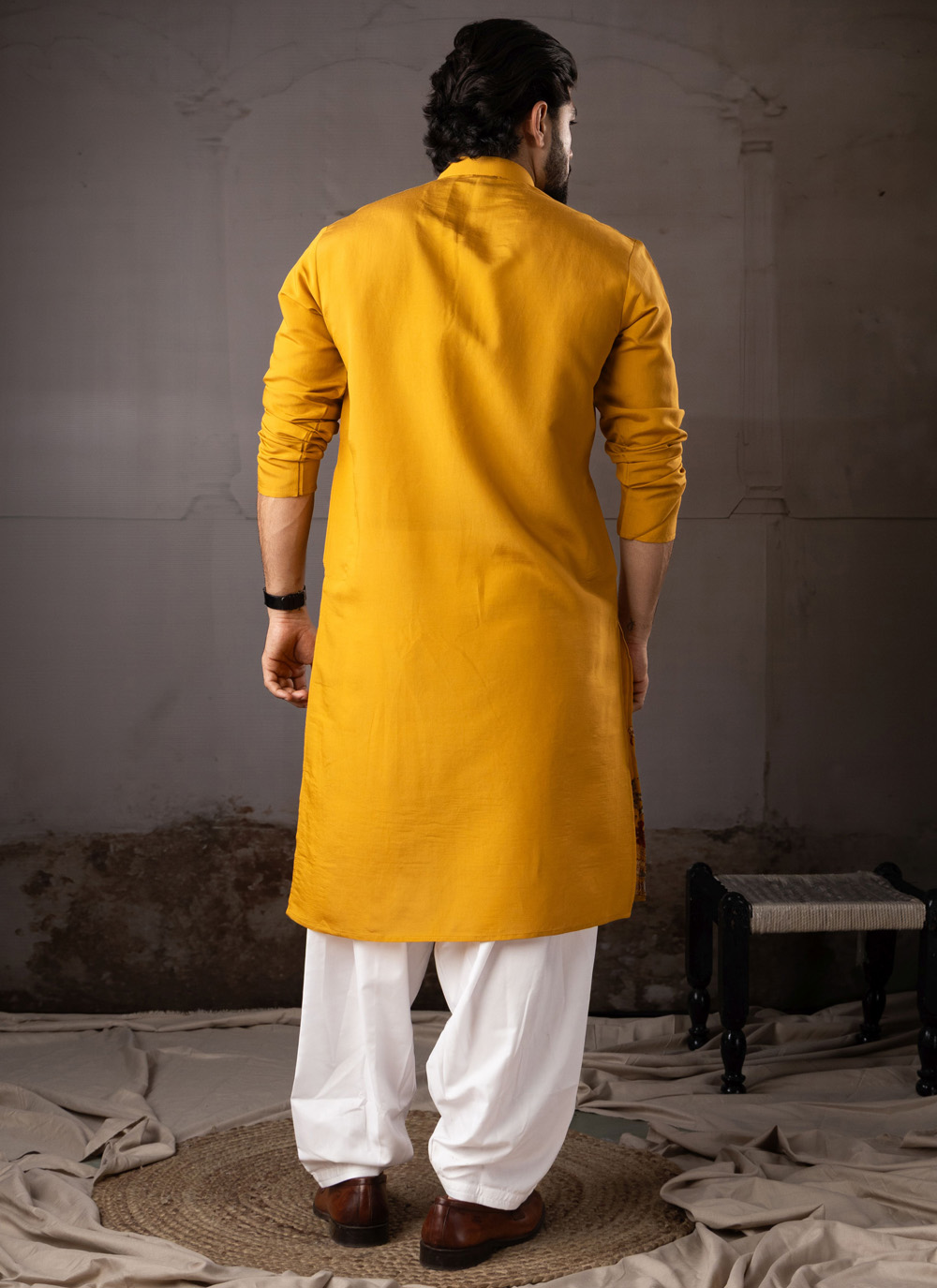 Add a touch of royal charm to your festive wardrobe with this silk mustard embroidered ceremonial kurta pyjama. Crafted from premium silk fabric, the outfit offers a smooth texture and graceful shine that reflects classic ethnic elegance.