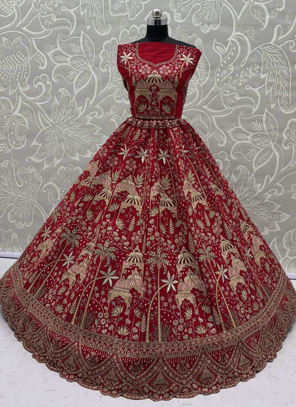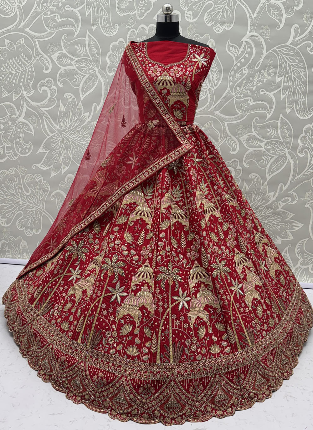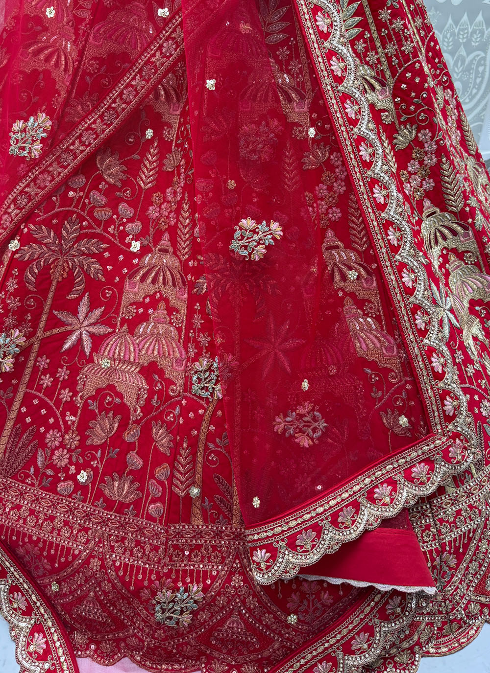 Enhance your bridal elegance with this Silk Sequins Dori Thread Diamond Zari Embroidered Bridal Lehenga Choli designed for grand occasions. The beautiful embroidery patterns reflect traditional artistry while the sequins and diamond-inspired details add a delicate sparkle. Comes with matching choli and dupatta.