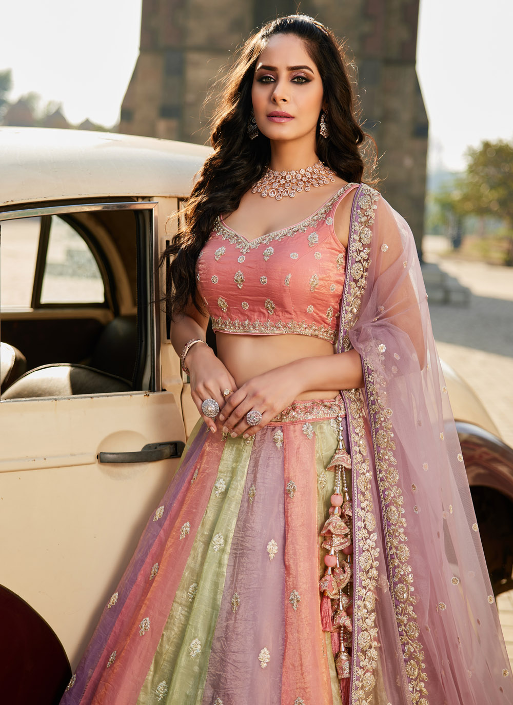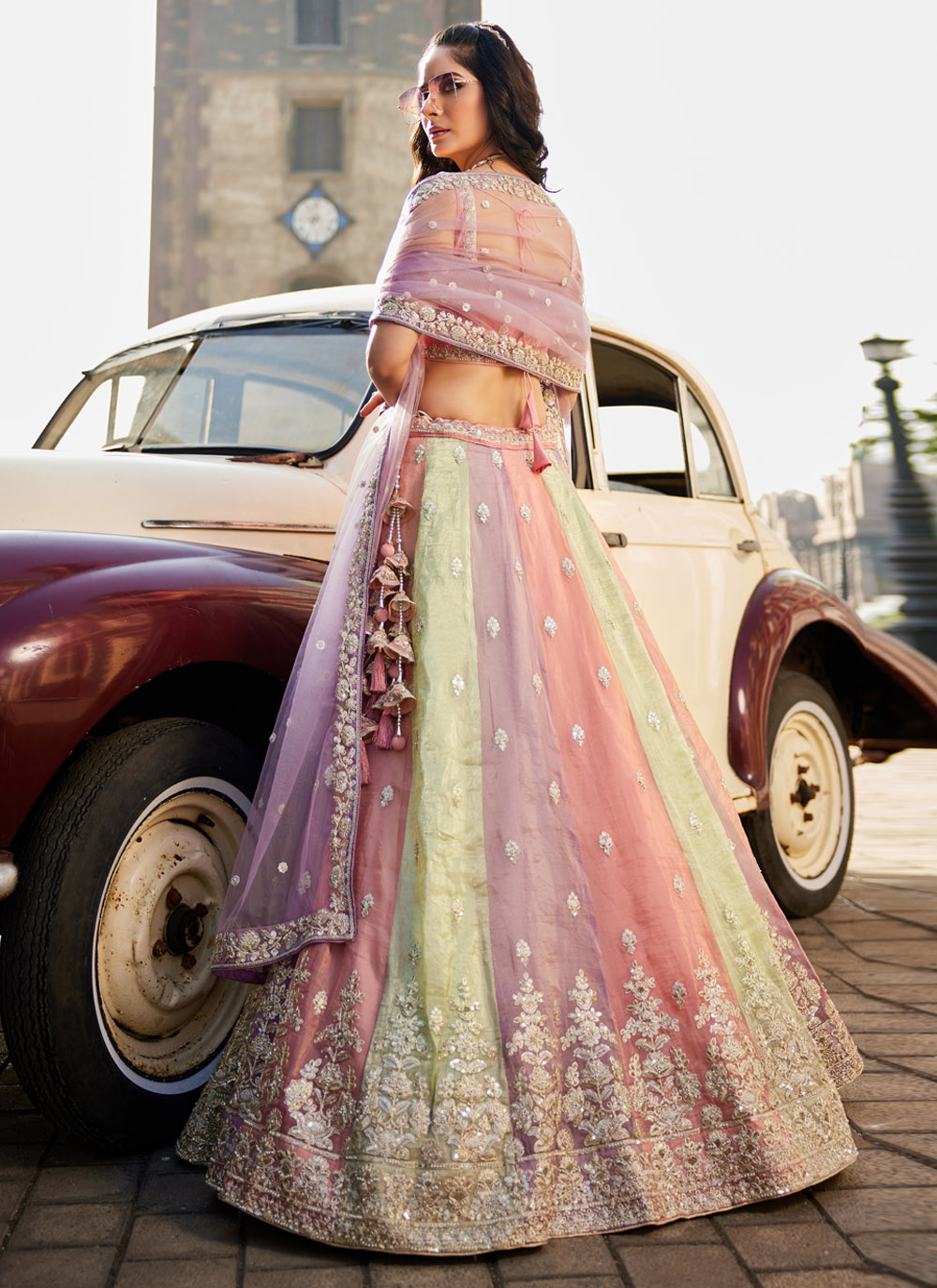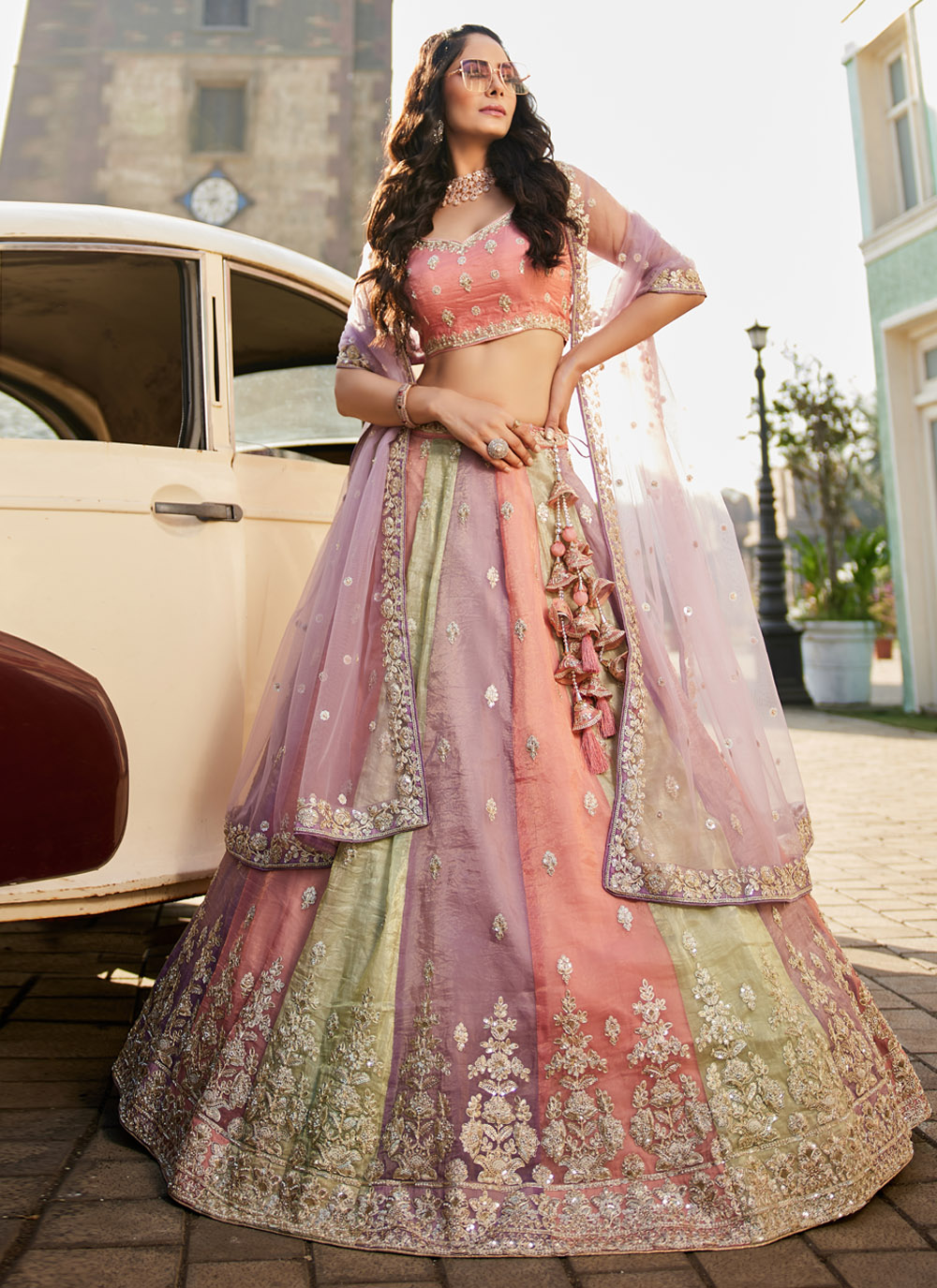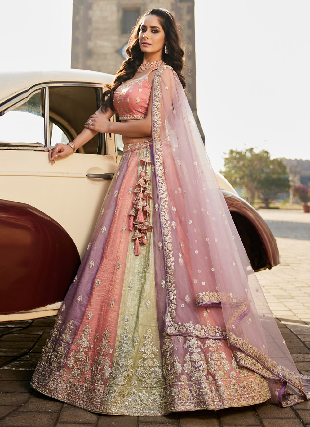 This Tissue Multi-Colour Lehenga Choli is a masterpiece that blends vibrant colours with traditional embroidery. The sequins, stonework, and luxurious fabric create a harmonious fusion of elegance and trendiness. Whether for a wedding, reception, or festive celebration, this lehenga is designed to leave a lasting impression. Comes with matching choli and dupatta.