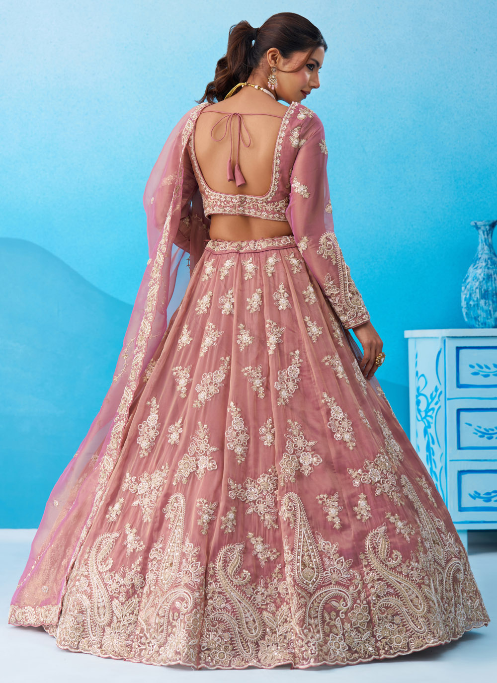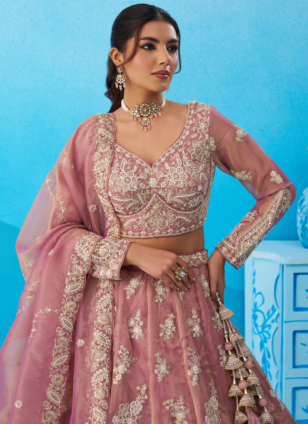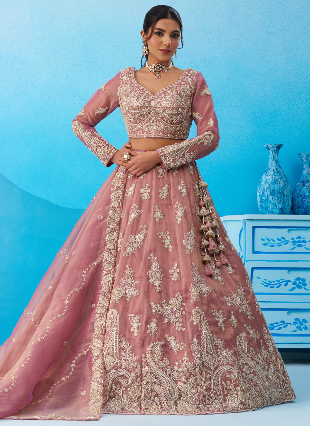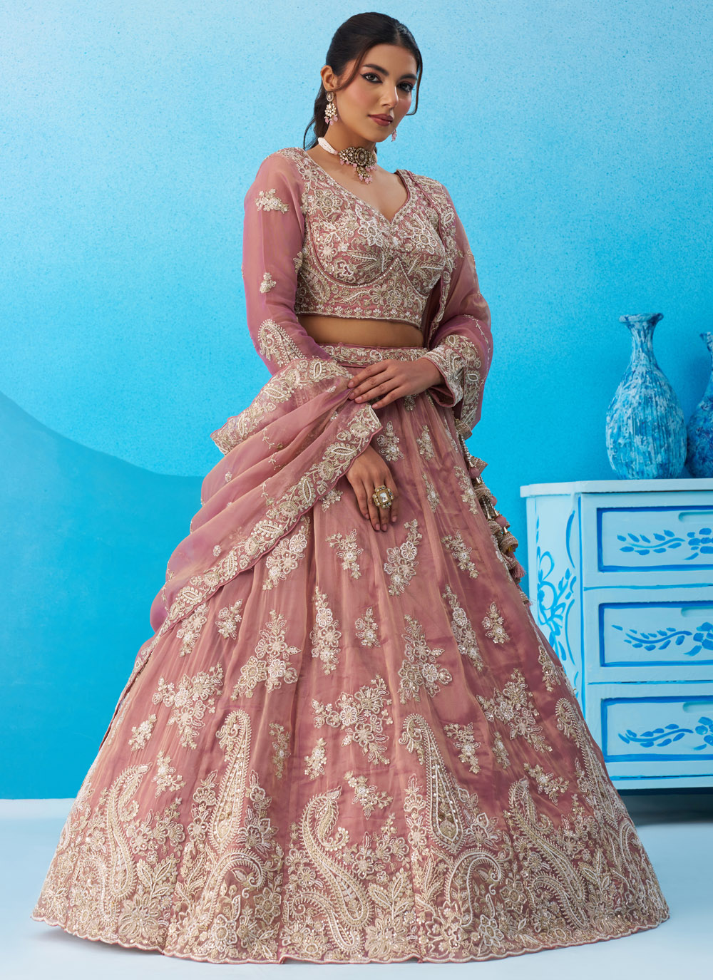 Add a touch of glamour to your ethnic wardrobe with the Tissue Pink Sequins Beads Embroidered Trendy Lehenga Choli. The soft tissue fabric offers comfort and elegance, while the sparkling embroidery enhances the overall design. Comes with matching choli and dupatta.