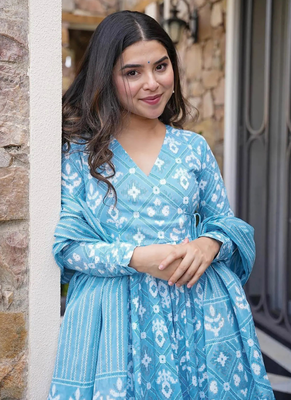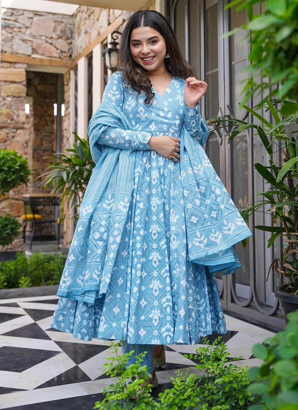 This Trendy Aqua Blue Muslin Digital Print Readymade Salwar Kameez offers the perfect balance of elegance and comfort. The vibrant aqua blue color combined with modern digital prints creates a fresh, stylish look for both casual and festive events. Comes with matching bottom and dupatta.