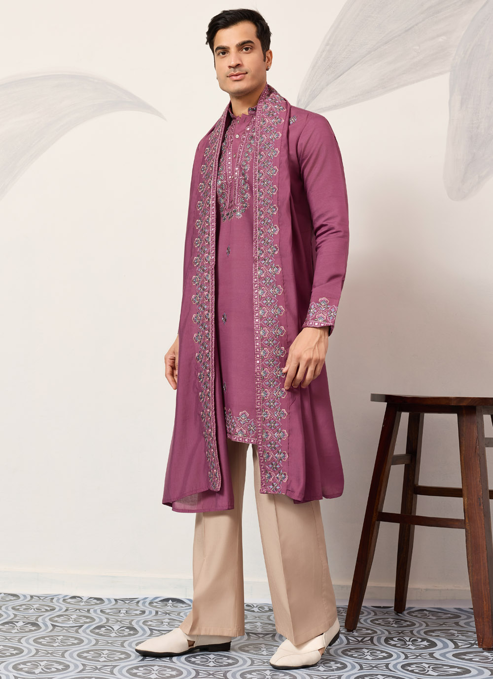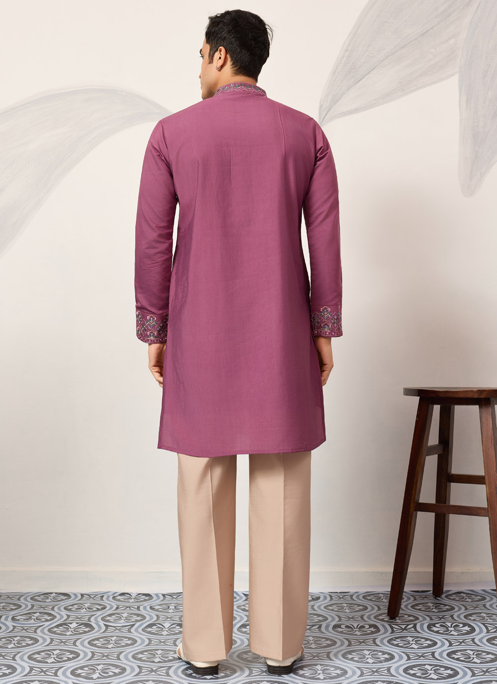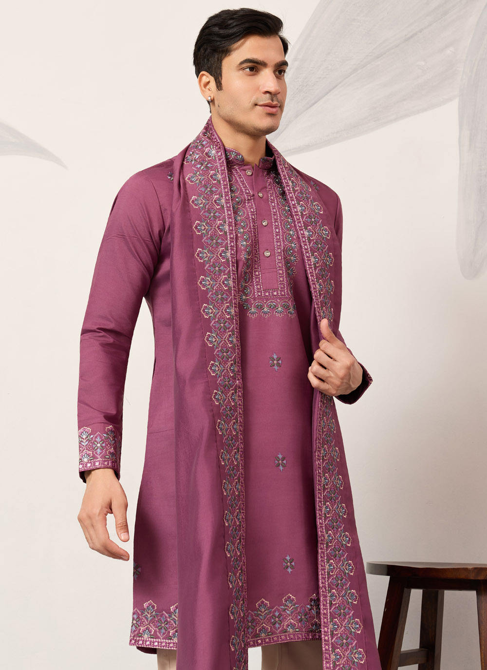 Make every occasion special with this Thread Sequins Embroidered Pink Viscose Silk Kurta. The lightweight fabric ensures comfort throughout the day, while the detailed embroidery gives a premium finish.