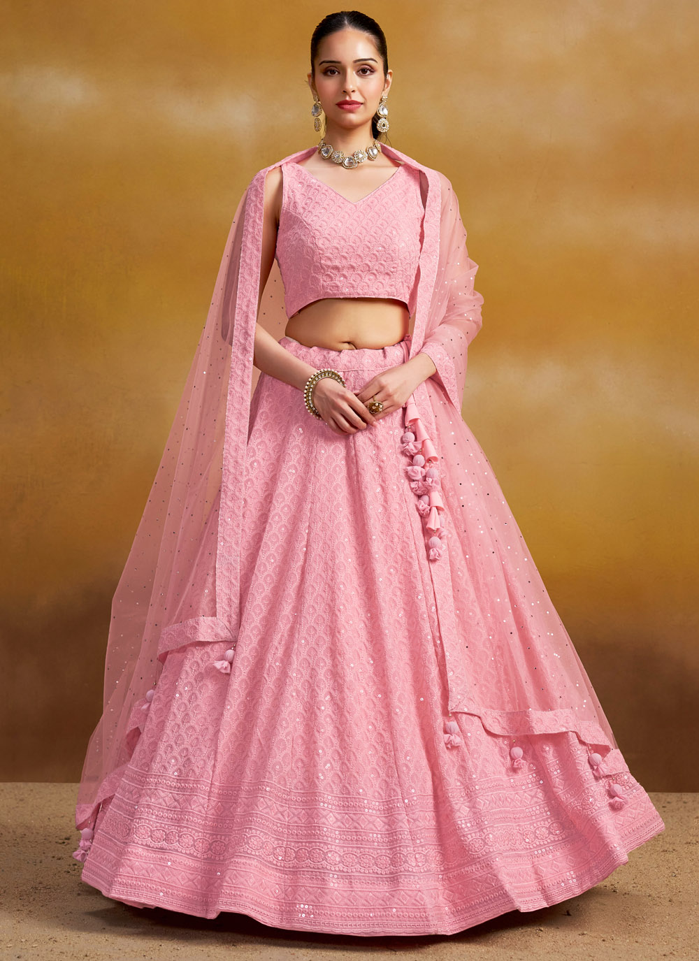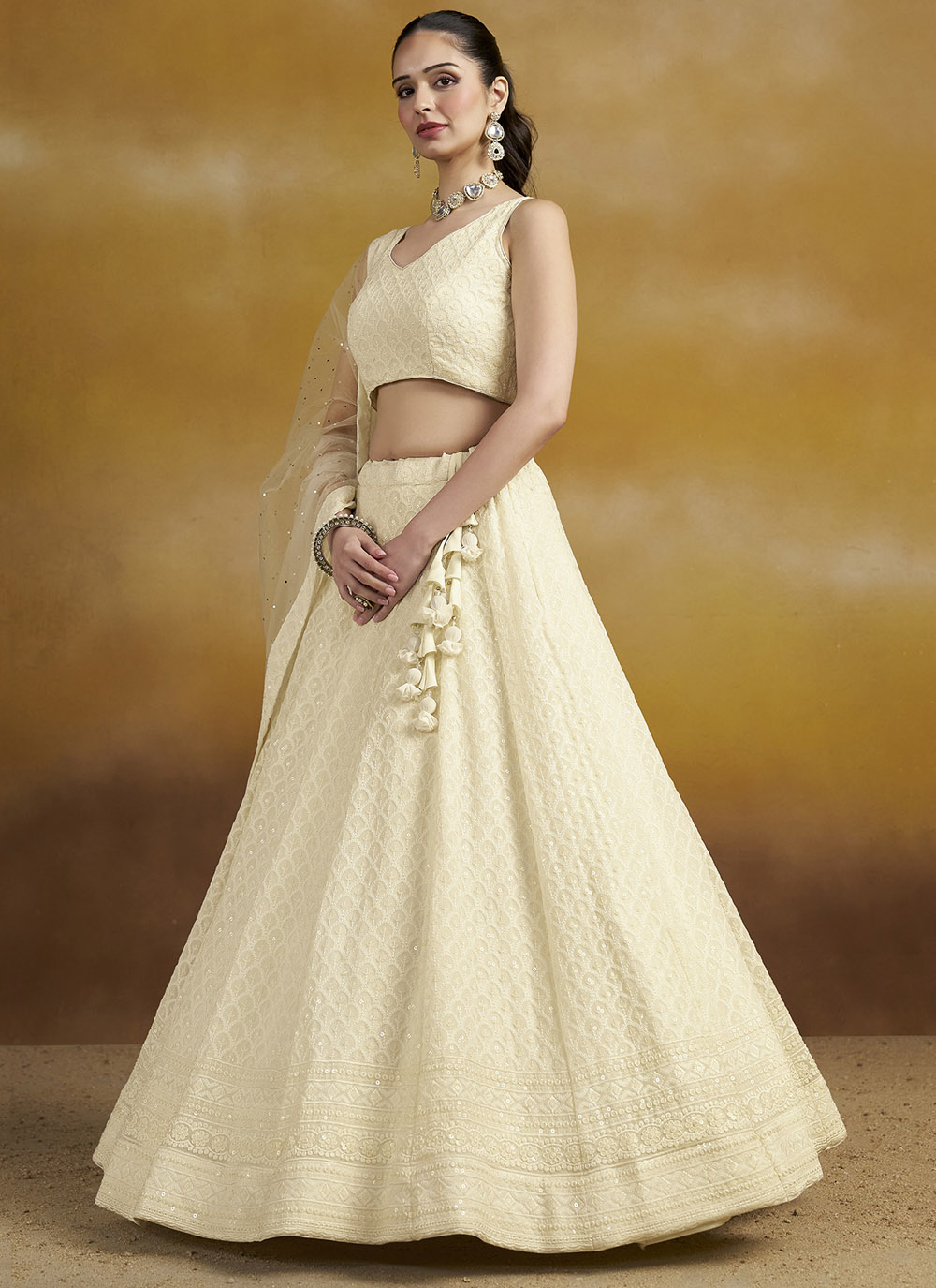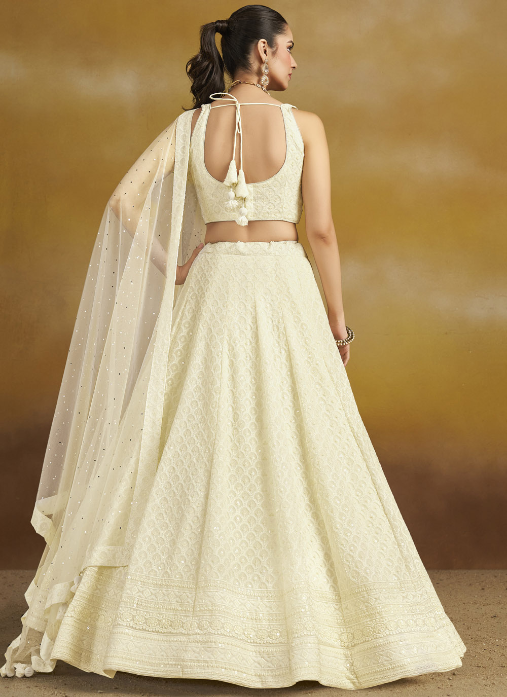 Grace every occasion with poise in this Sequins & Thread Embroidered White Lehenga Choli. Crafted in soft georgette, this ensemble offers a modern yet traditional look, perfect for bridesmaids, engagement parties, and festive evenings. Comes with matching choli and dupatta.