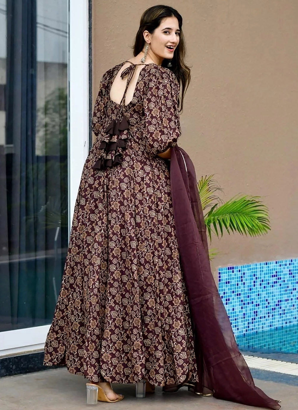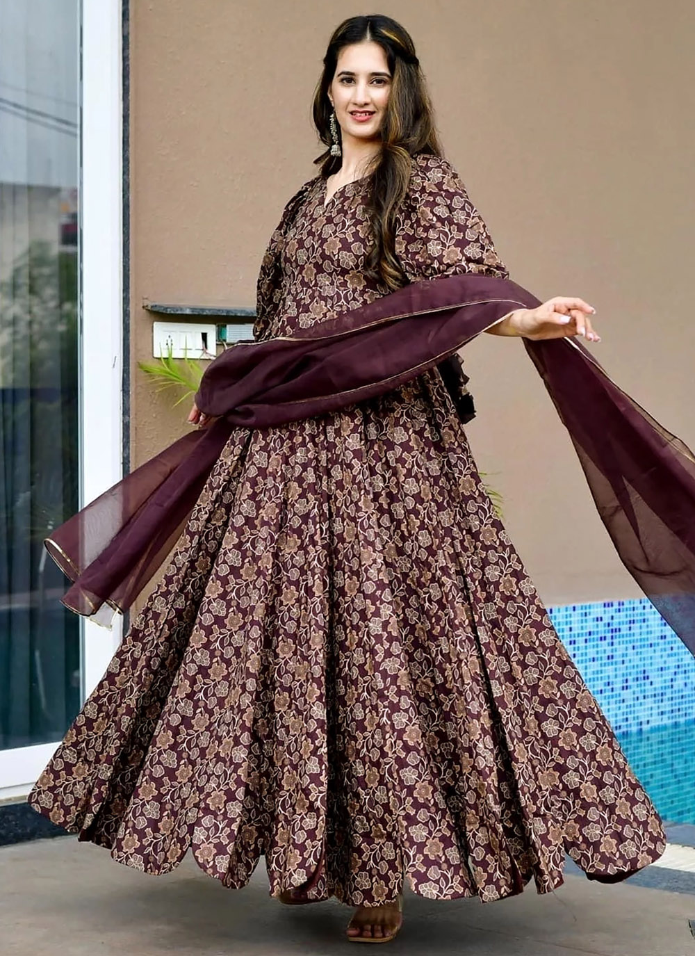 The Wine Rayon Digital Printed Designer Readymade Gown is designed for women who enjoy stylish yet comfortable ethnic outfits. The soft rayon fabric allows easy movement, while the artistic digital prints enhance the beauty of the design. Comes with matching dupatta.
