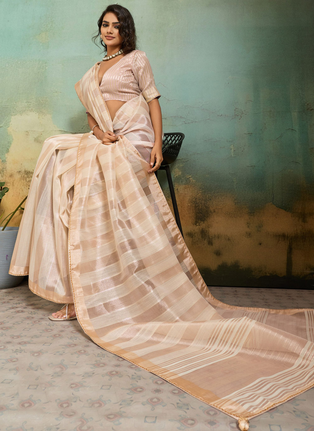 This Woven Cotton Silk Cream Traditional Saree for Women beautifully highlights classic Indian artistry. The intricate woven detailing enhances the richness of the cotton silk fabric. Comes with matching blouse.