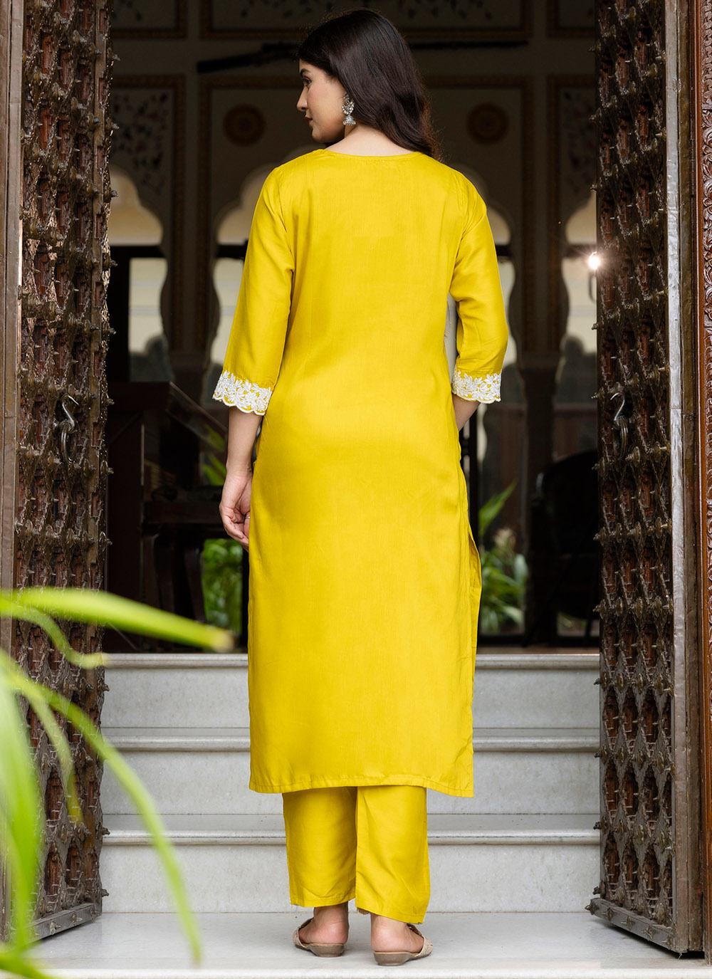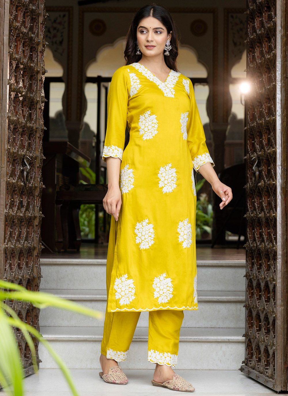 Brighten your festive collection with this beautifully crafted Yellow Embroidered Silk Blend Festival Wear Kurti. The radiant yellow color reflects positivity and joy, making it an ideal choice for traditional events.