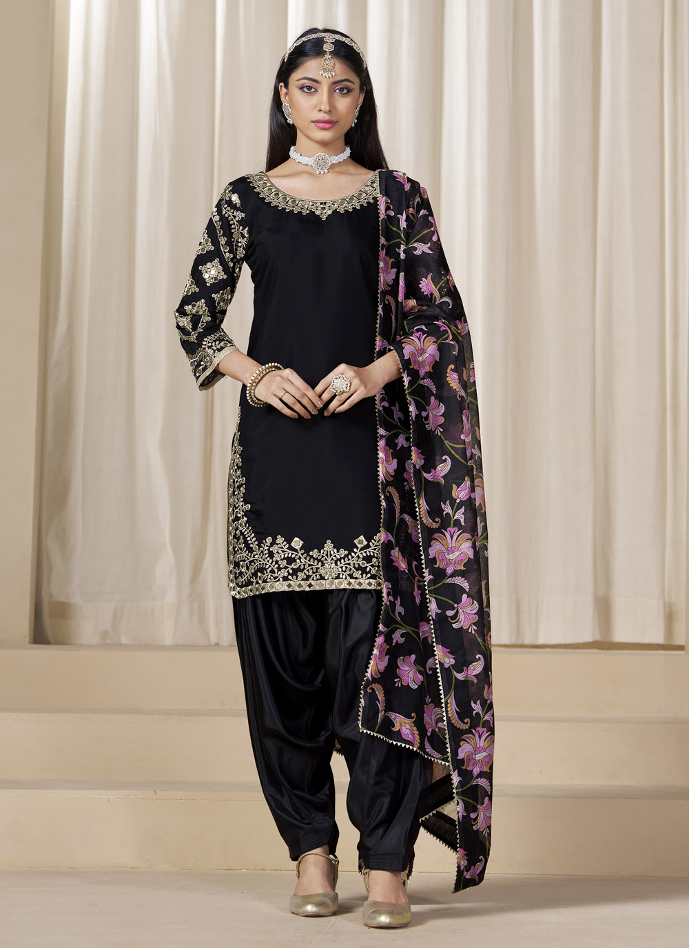 Purple Silk Sequins Embroidered Patiala Style Salwar Suit