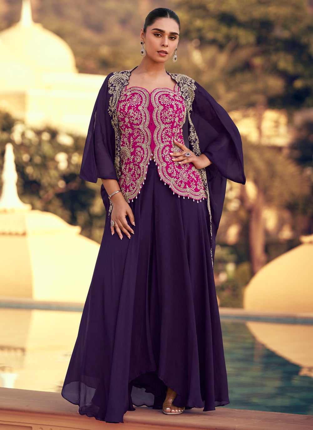 Chinon Embroidered Palazzo Salwar Kameez in Lavender