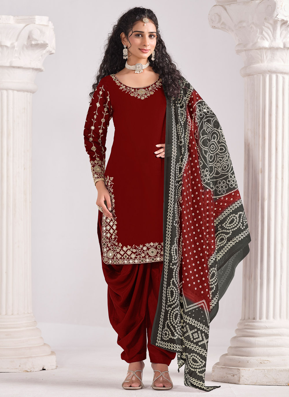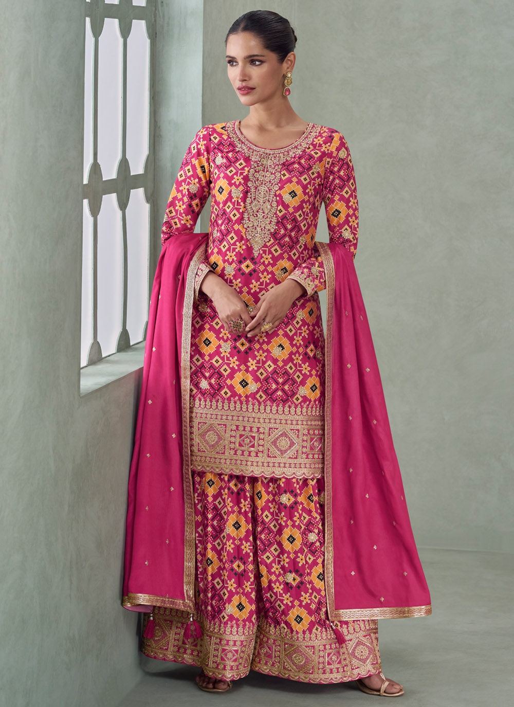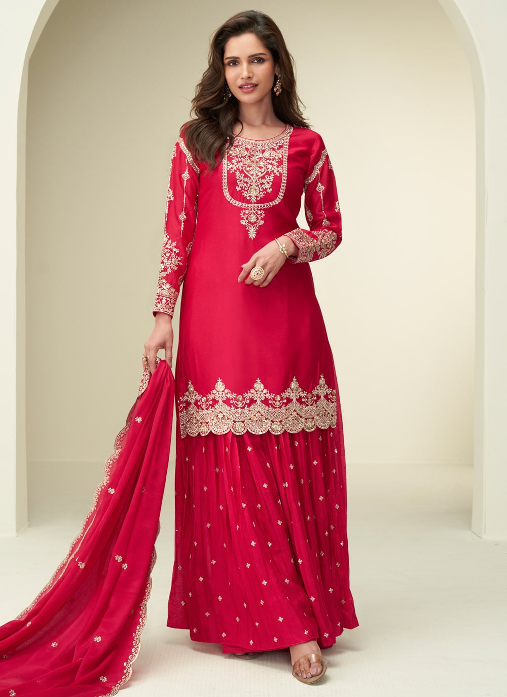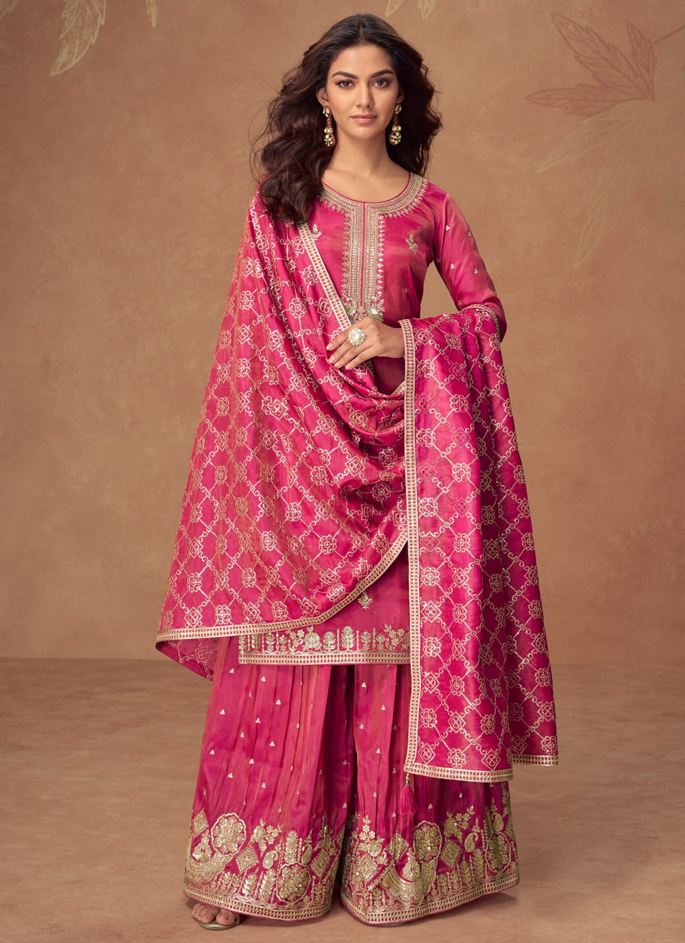 Pink Chinon Thread Embroidered Designer Readymade Salwar Kameez