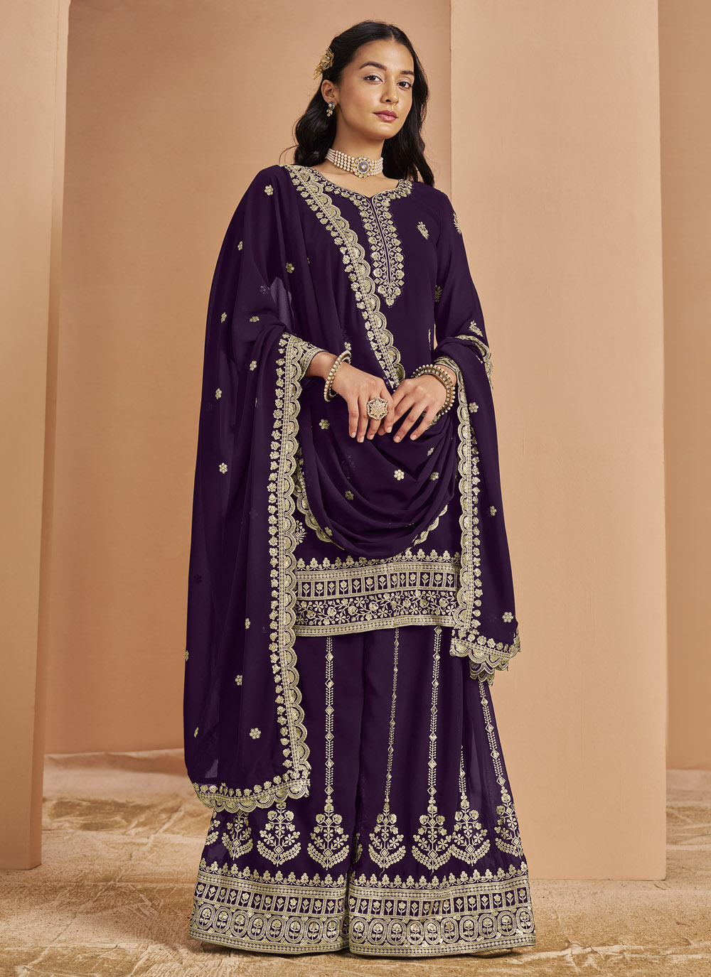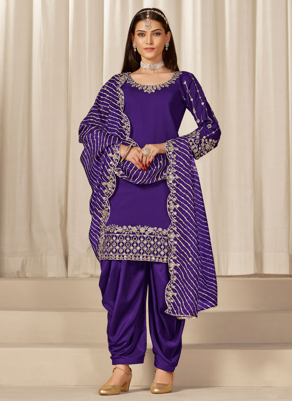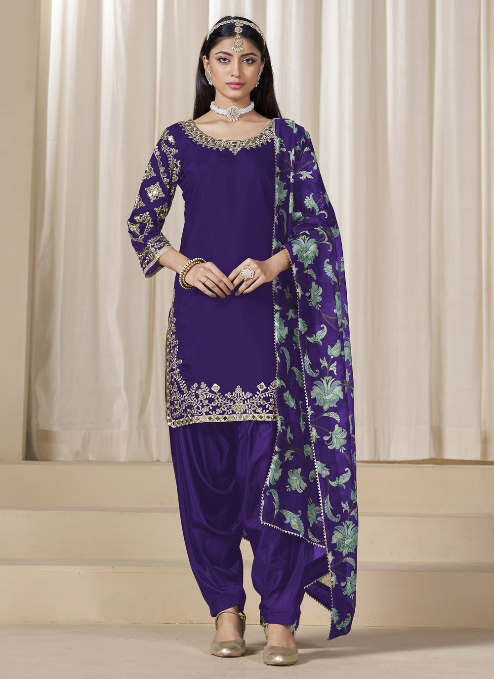 Purple Silk Sequins Embroidered Patiala Style Salwar Suit
