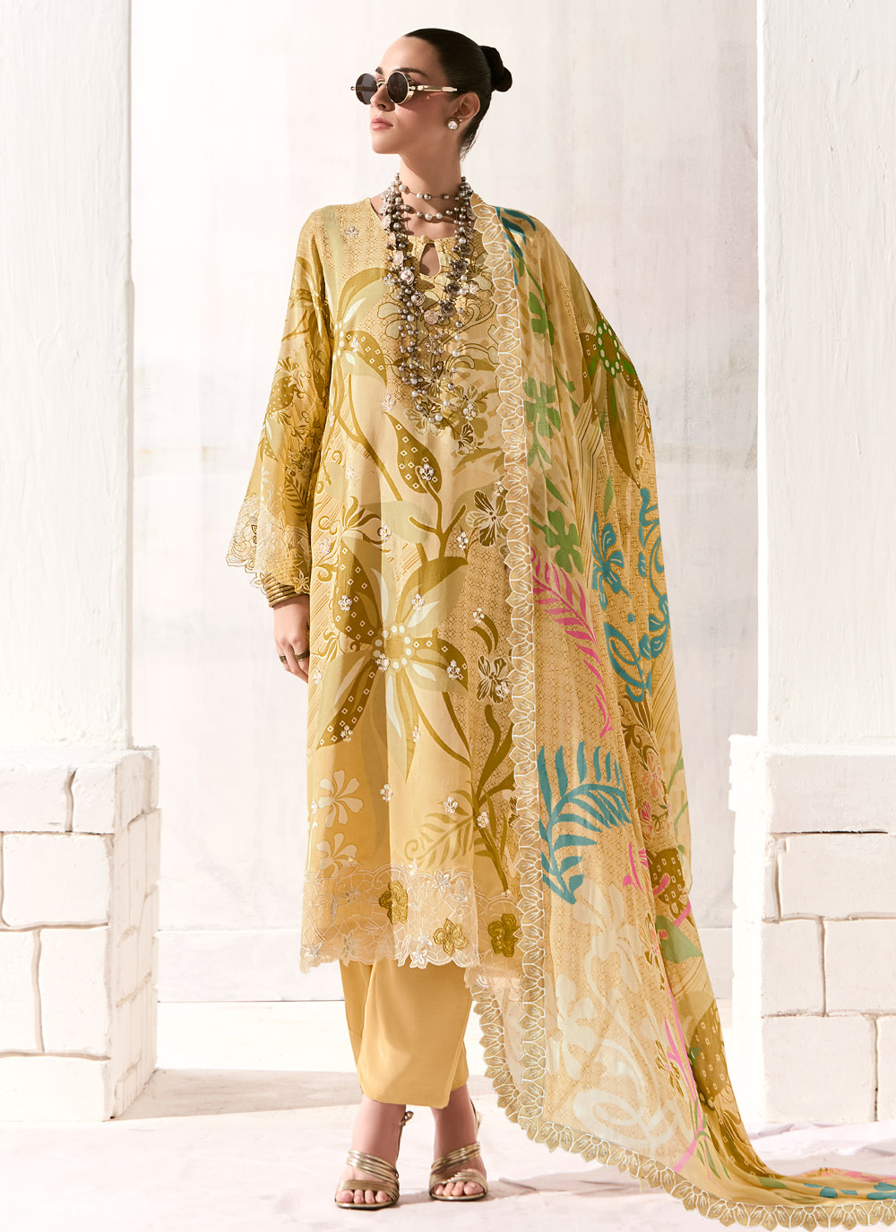 Silk Yellow Mirror Zari Embroidered Punjabi Salwar Suit