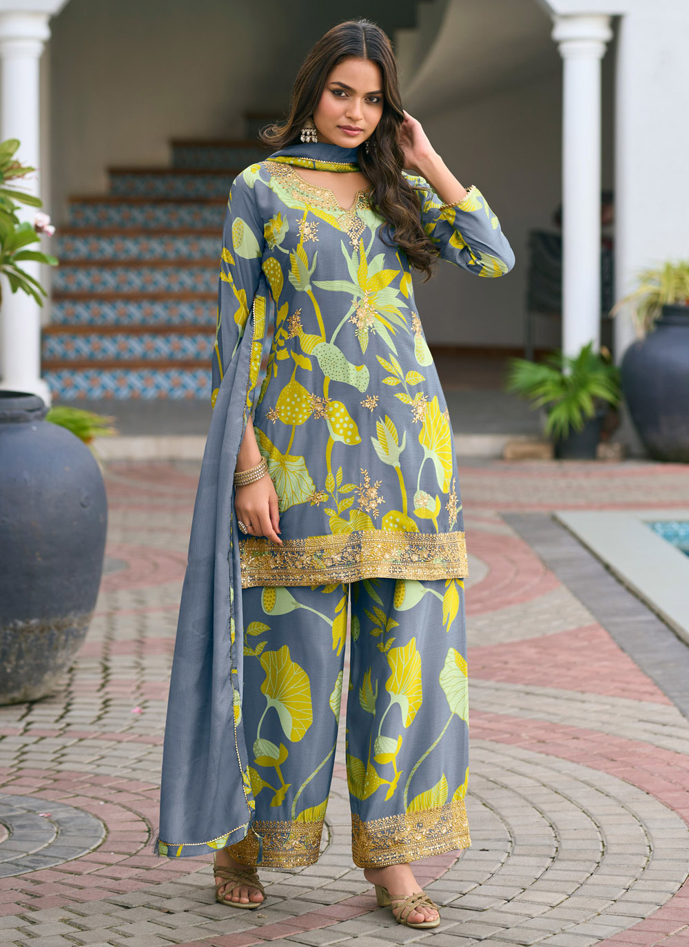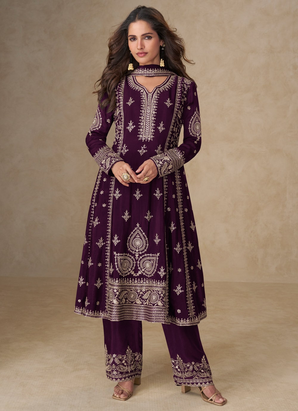 Embroidered Chinon Silk Trendy Salwar Kameez in Purple