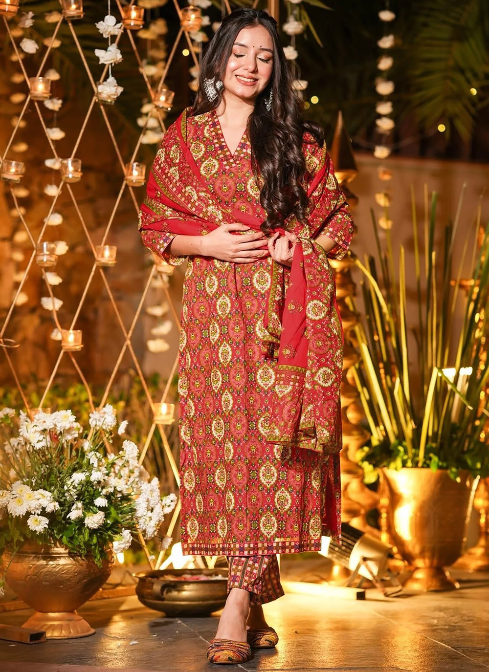 Muslin Digital Printed Green Readymade Pant Style Suit