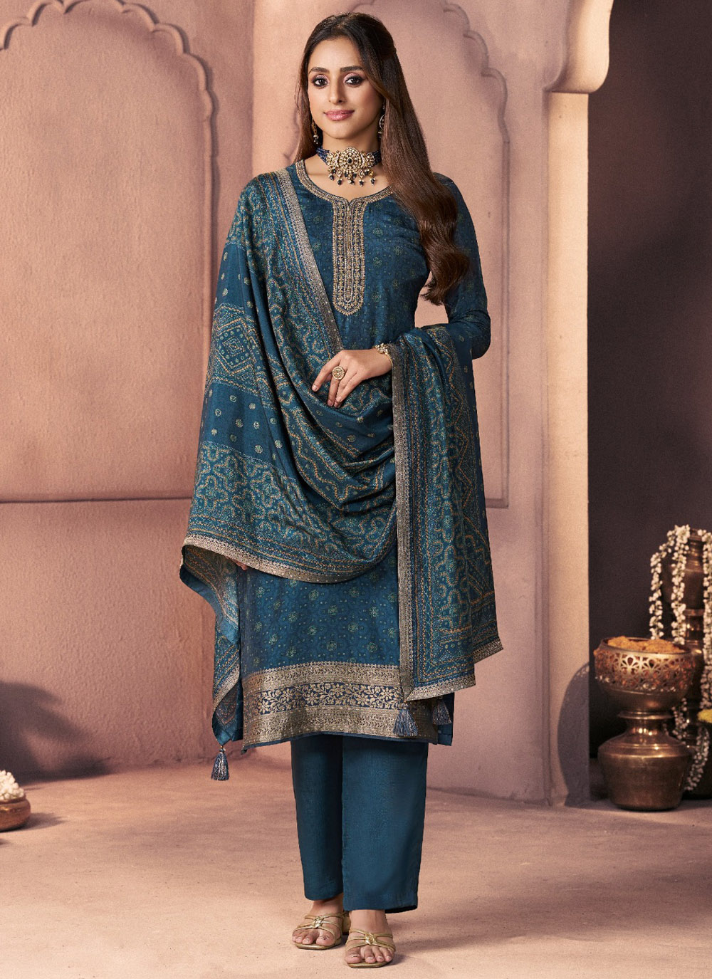 Silk Teal Digital Printed Readymade Pant Style Suit