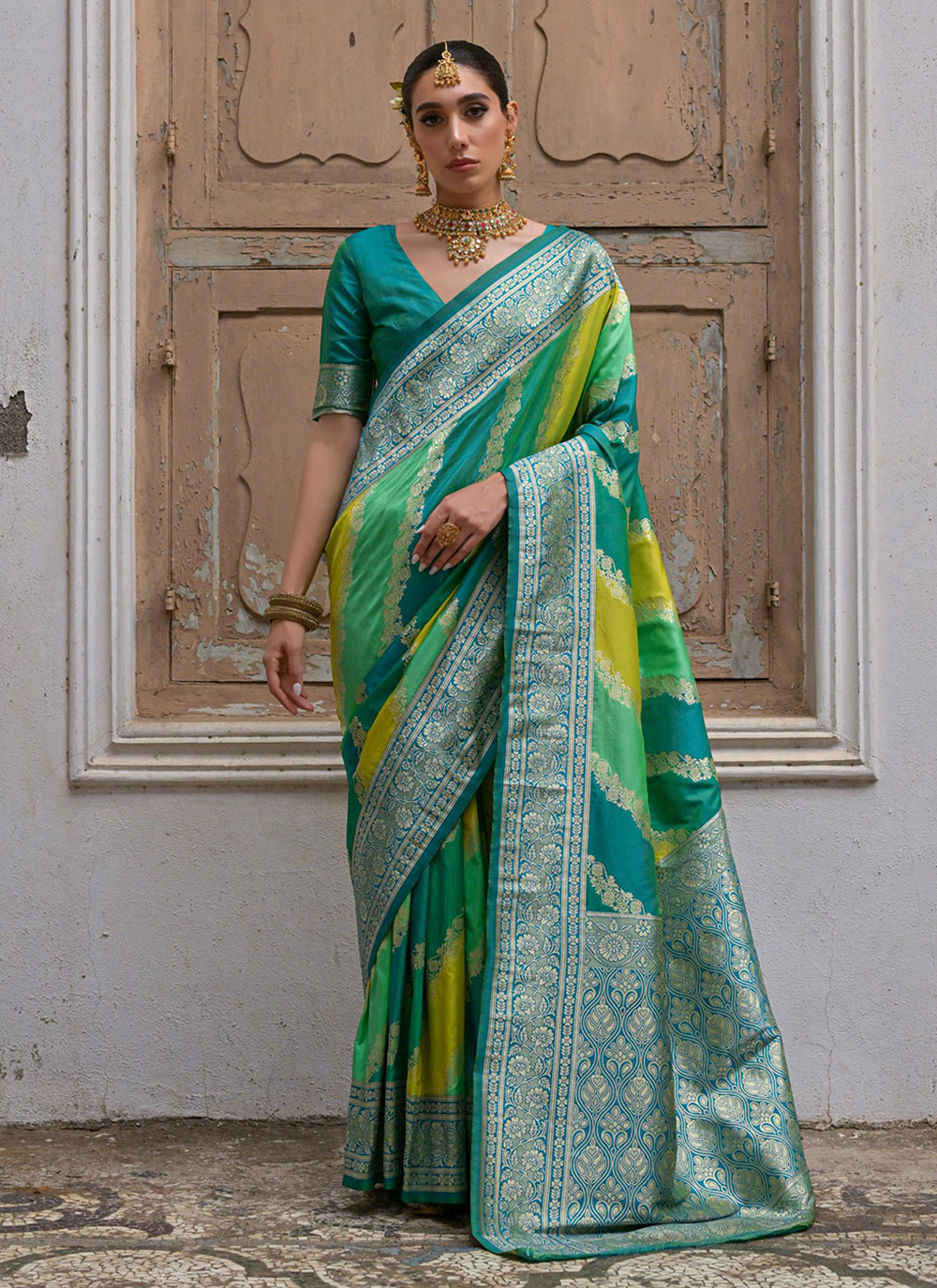 Classic Rama Banarasi Silk Meenakari Traditional Saree