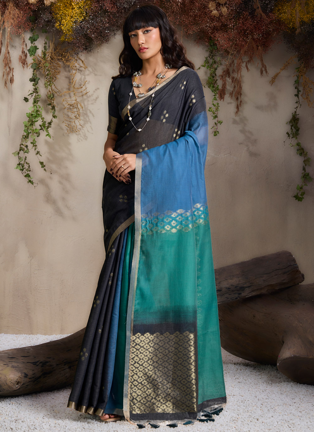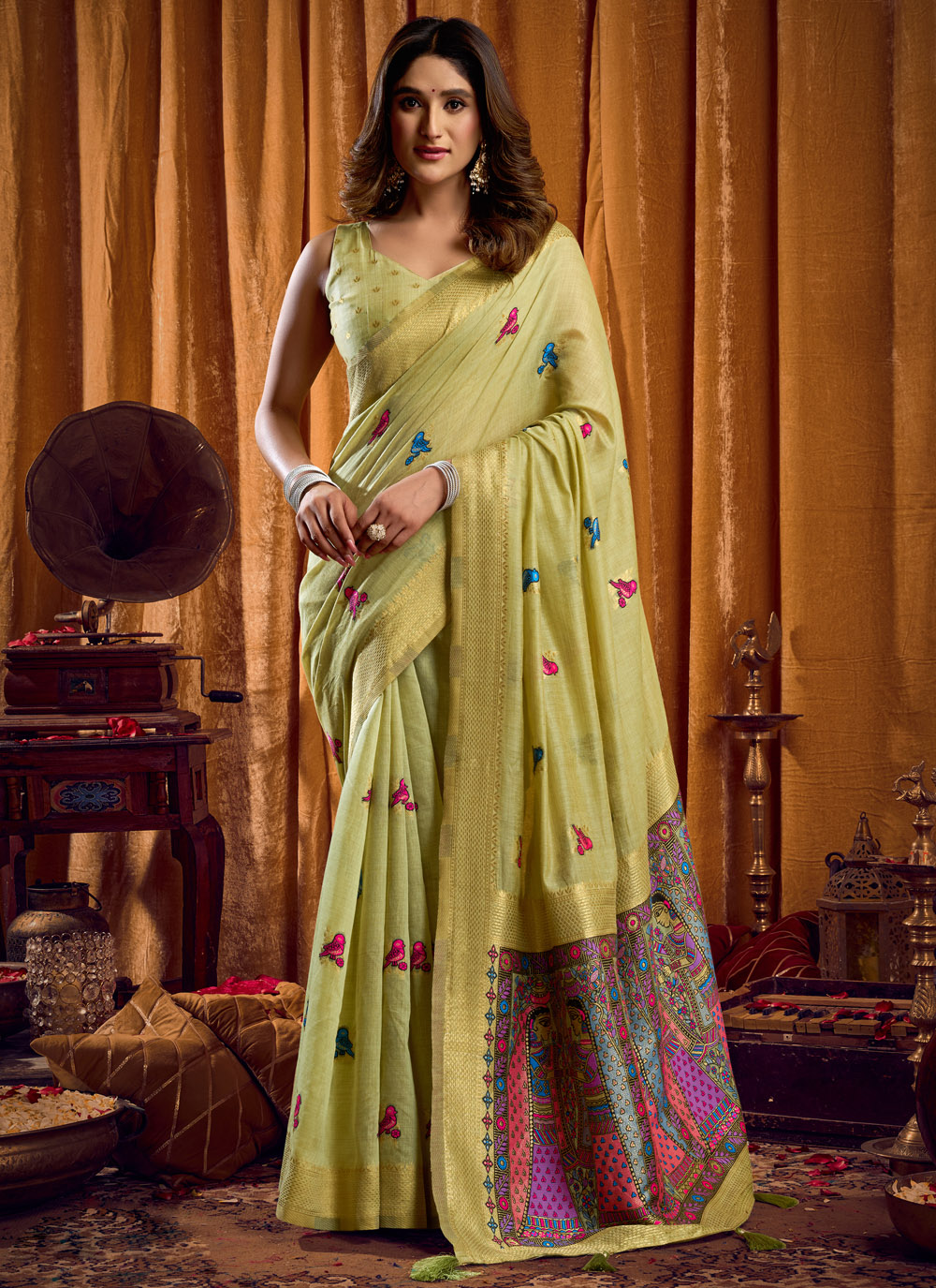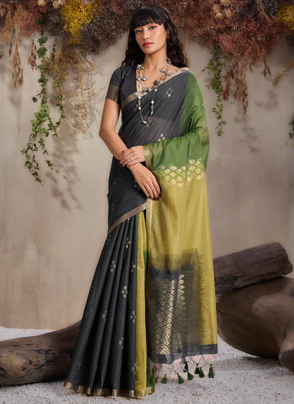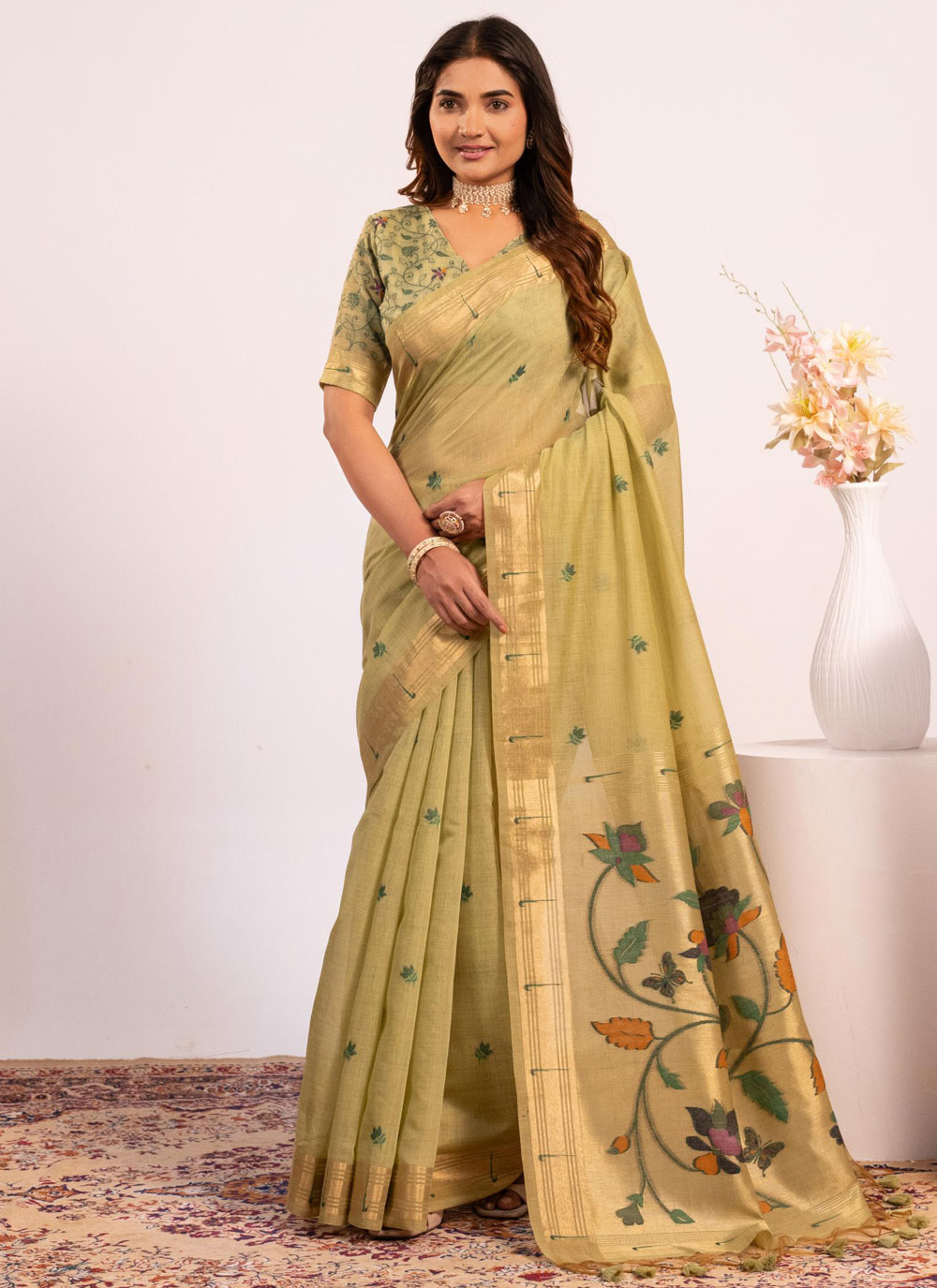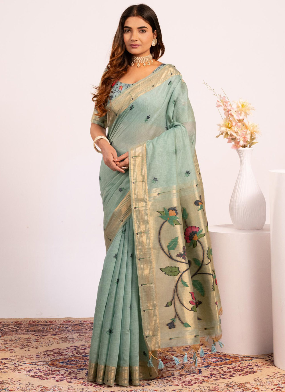 Cotton Weaving Meenakari Work Green Trendy Saree