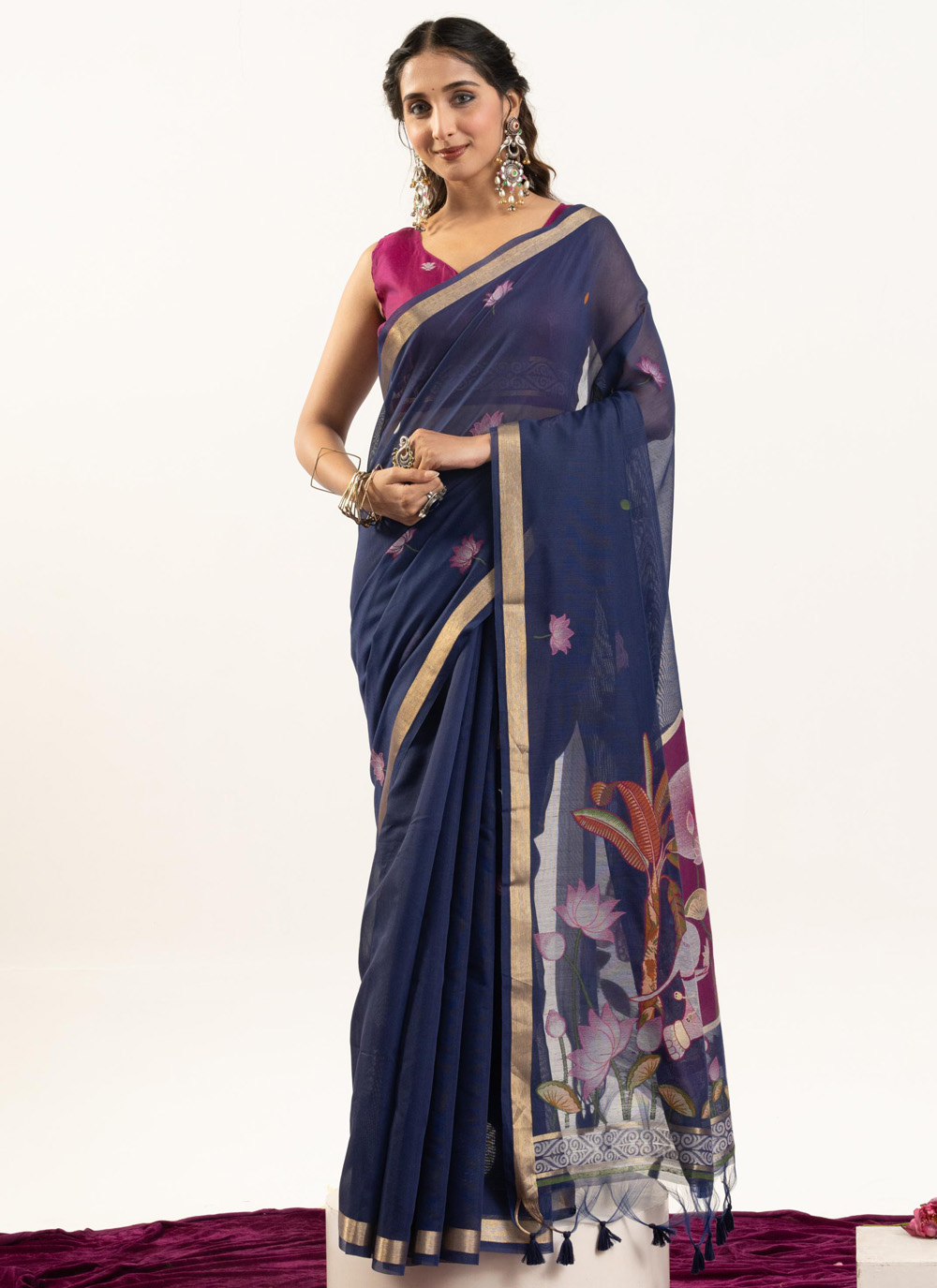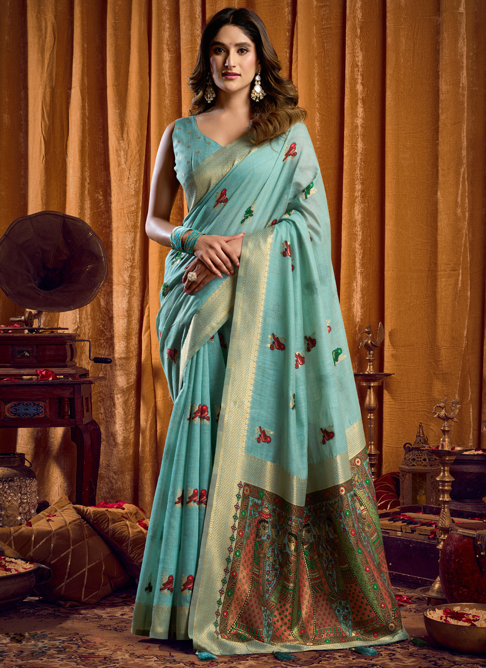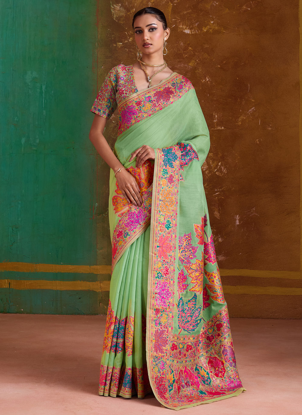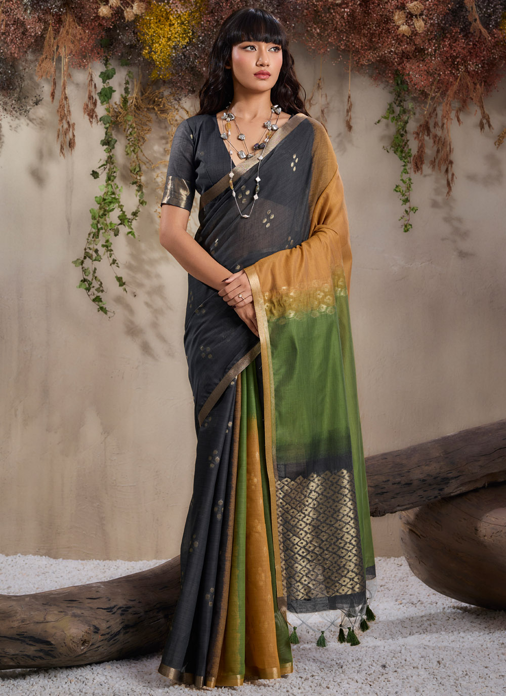 Cotton Weaving Meenakari Work Green Trendy Saree
