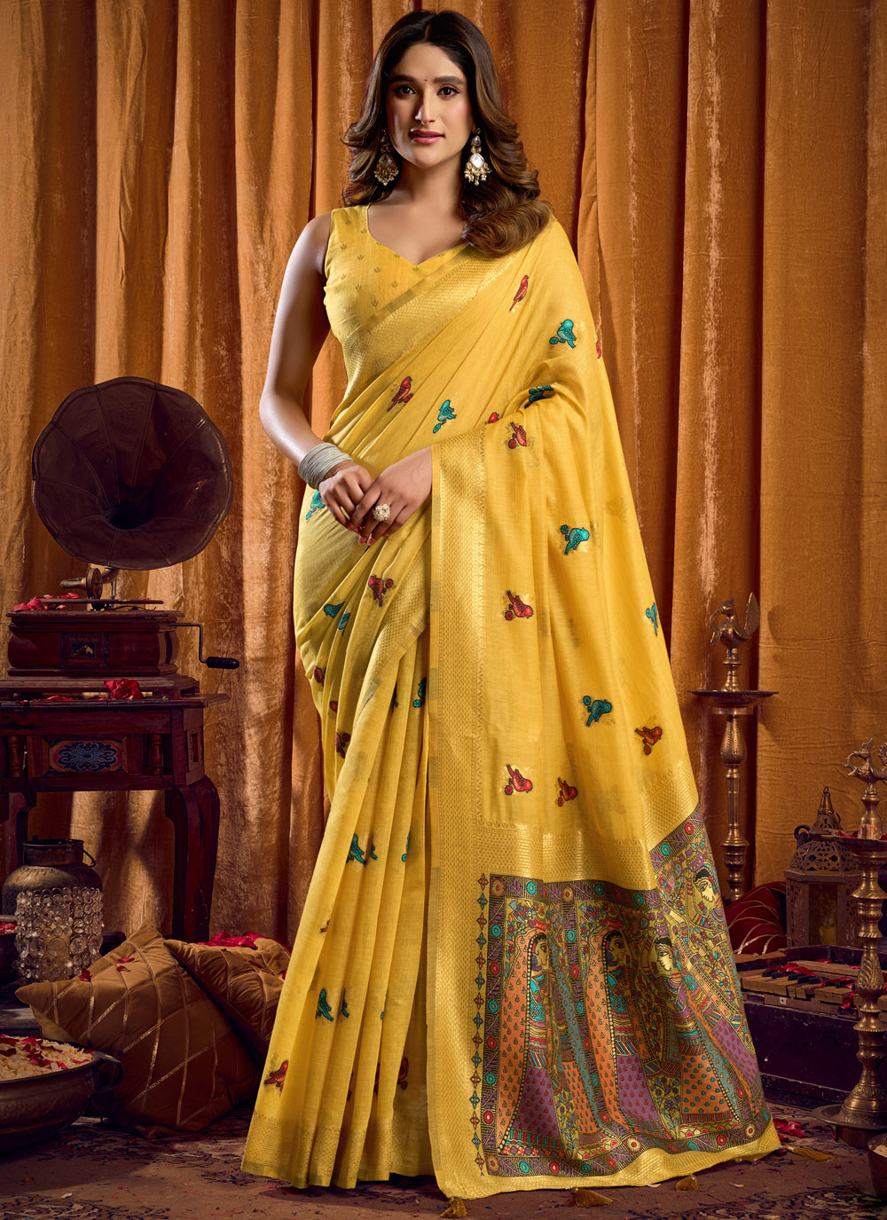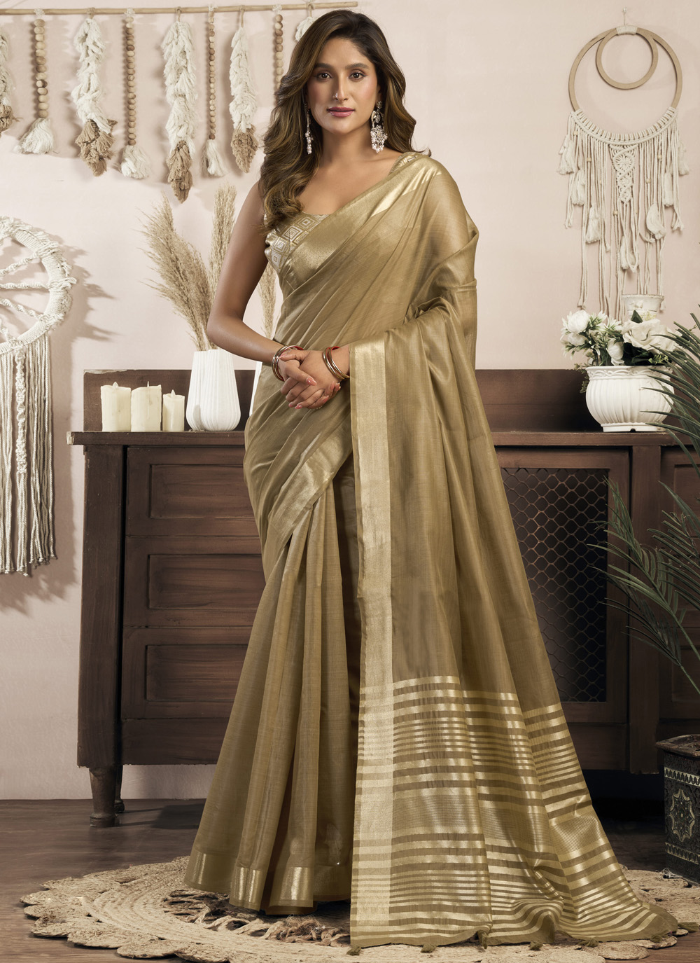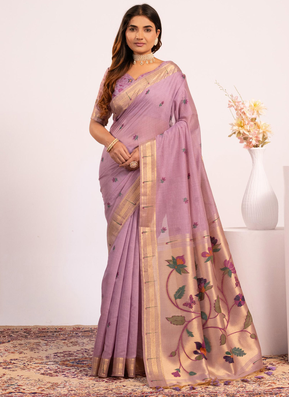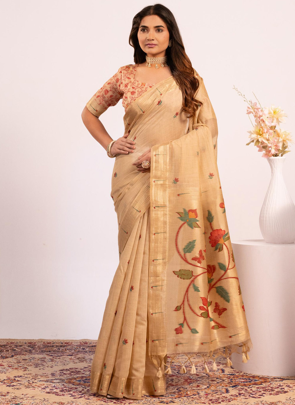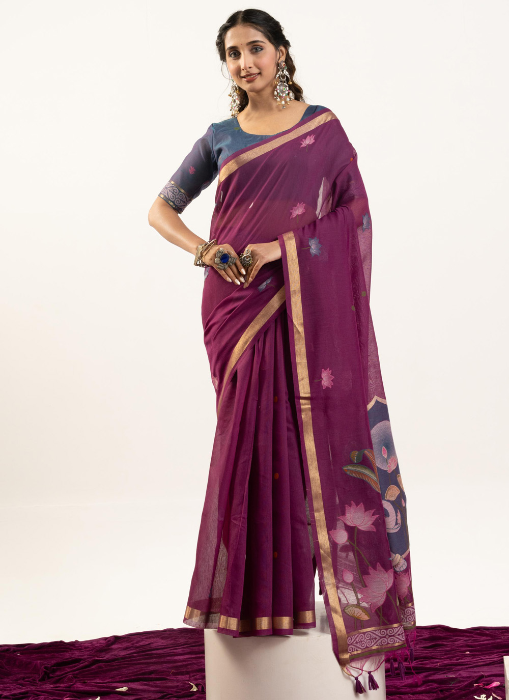 Cotton Weaving Meenakari Work Green Trendy Saree