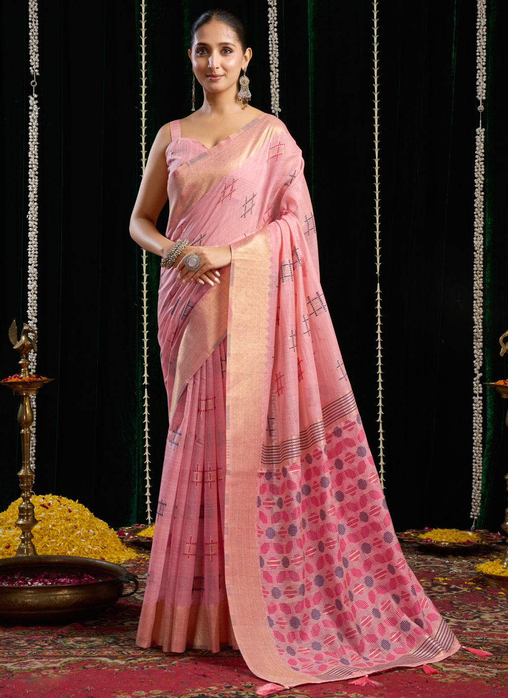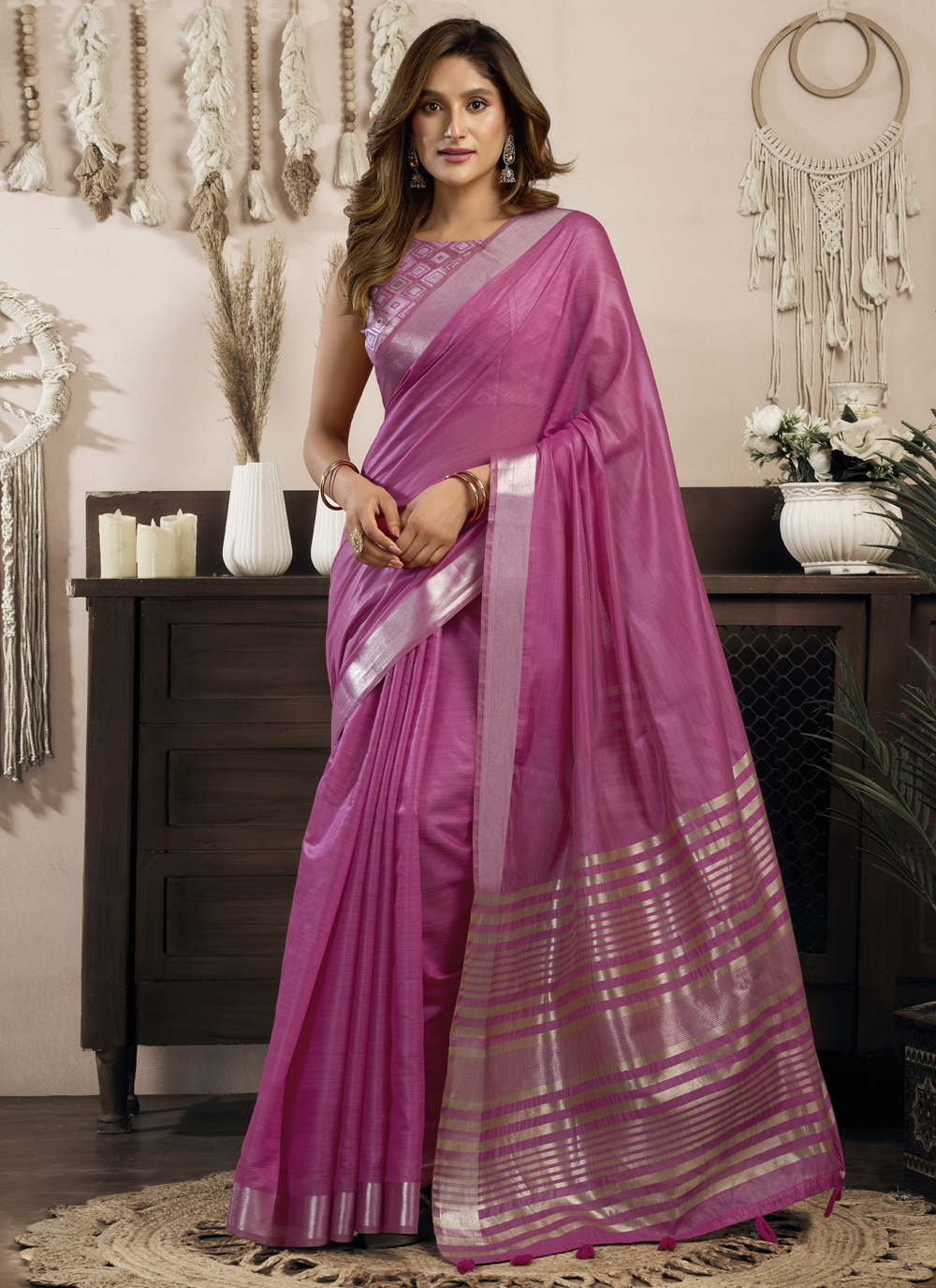 Pink Cotton Trendy Plain Casual Saree