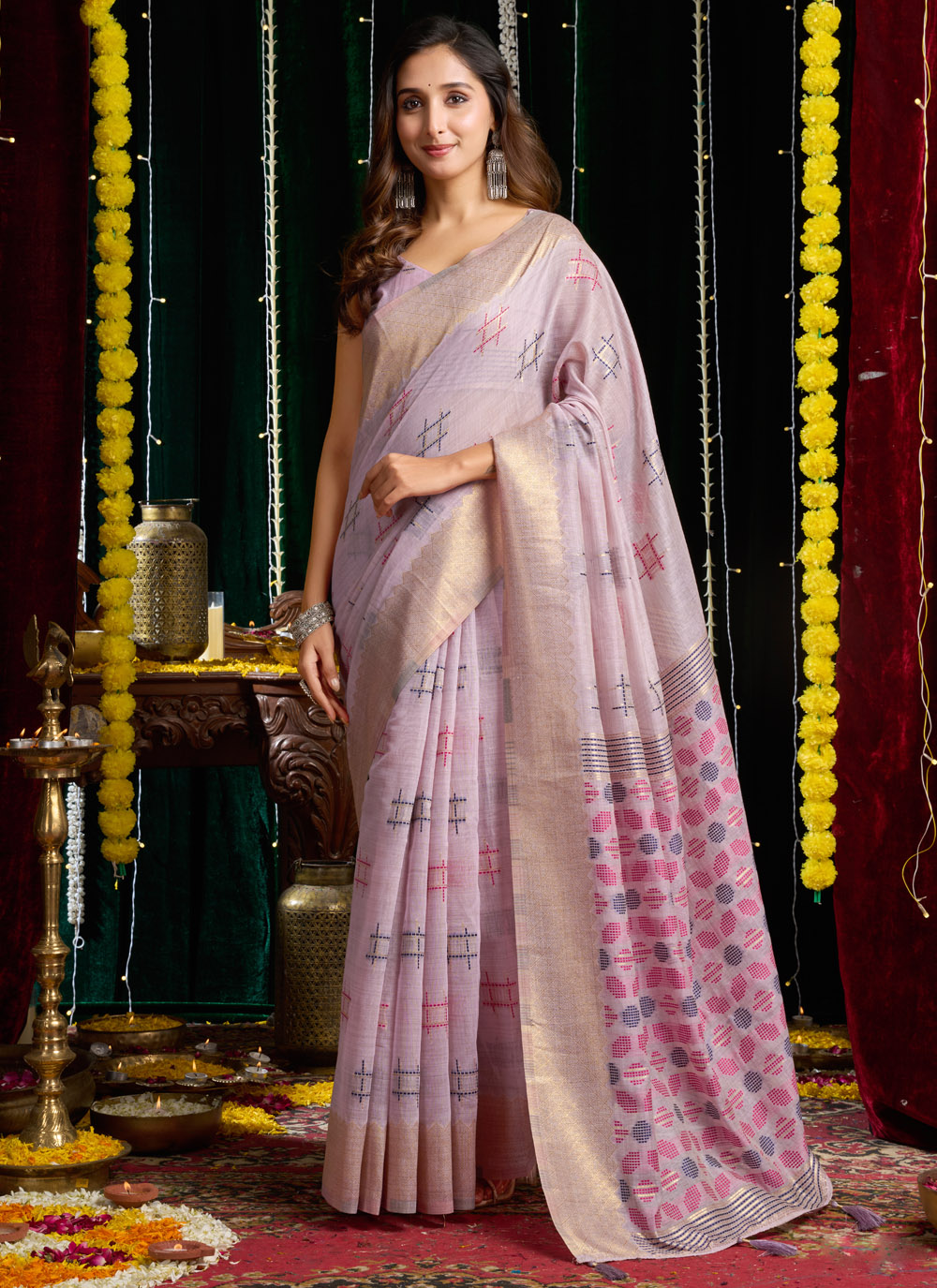 Lavender Weaving Cotton Festival Trendy Saree